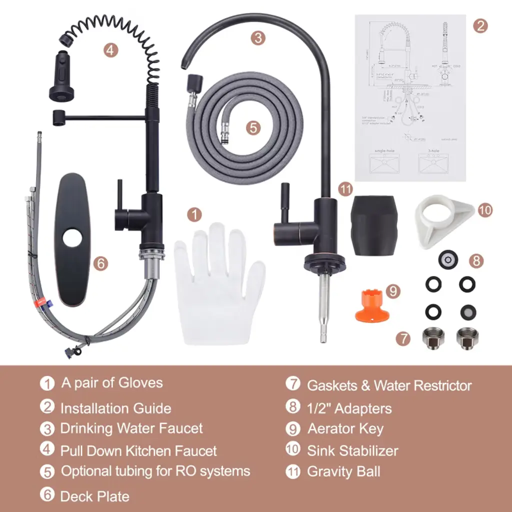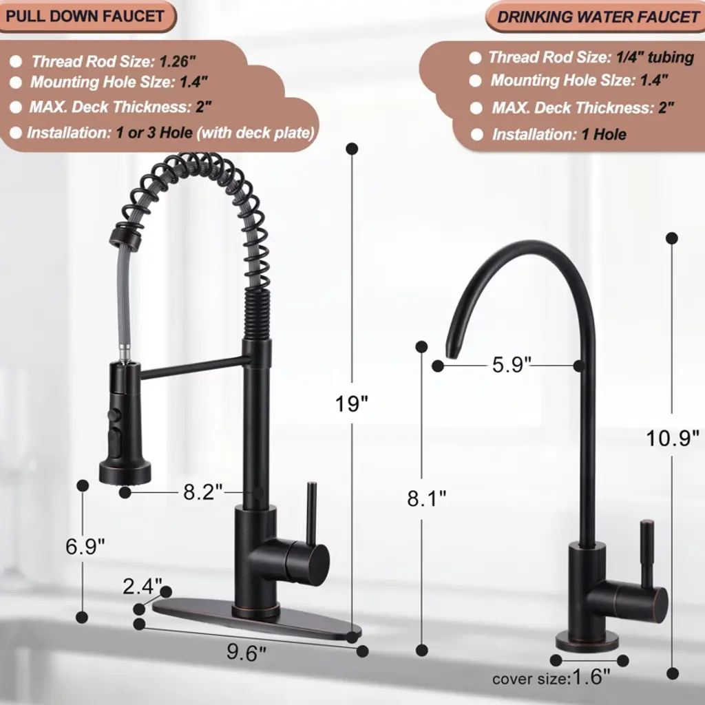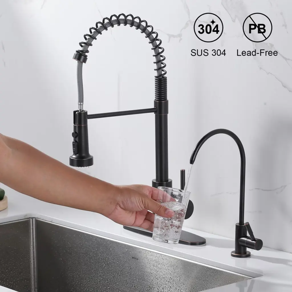 Wowow 2-in-1 Kitchen Faucet Set, Sus 304 Stainless Steel Pull Down Faucet With Drinking Water Faucet In Oil Rubbed Bronze