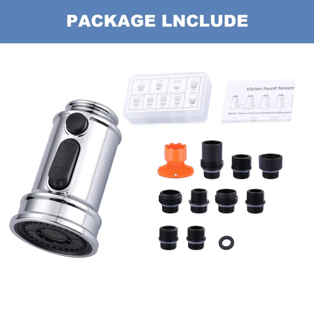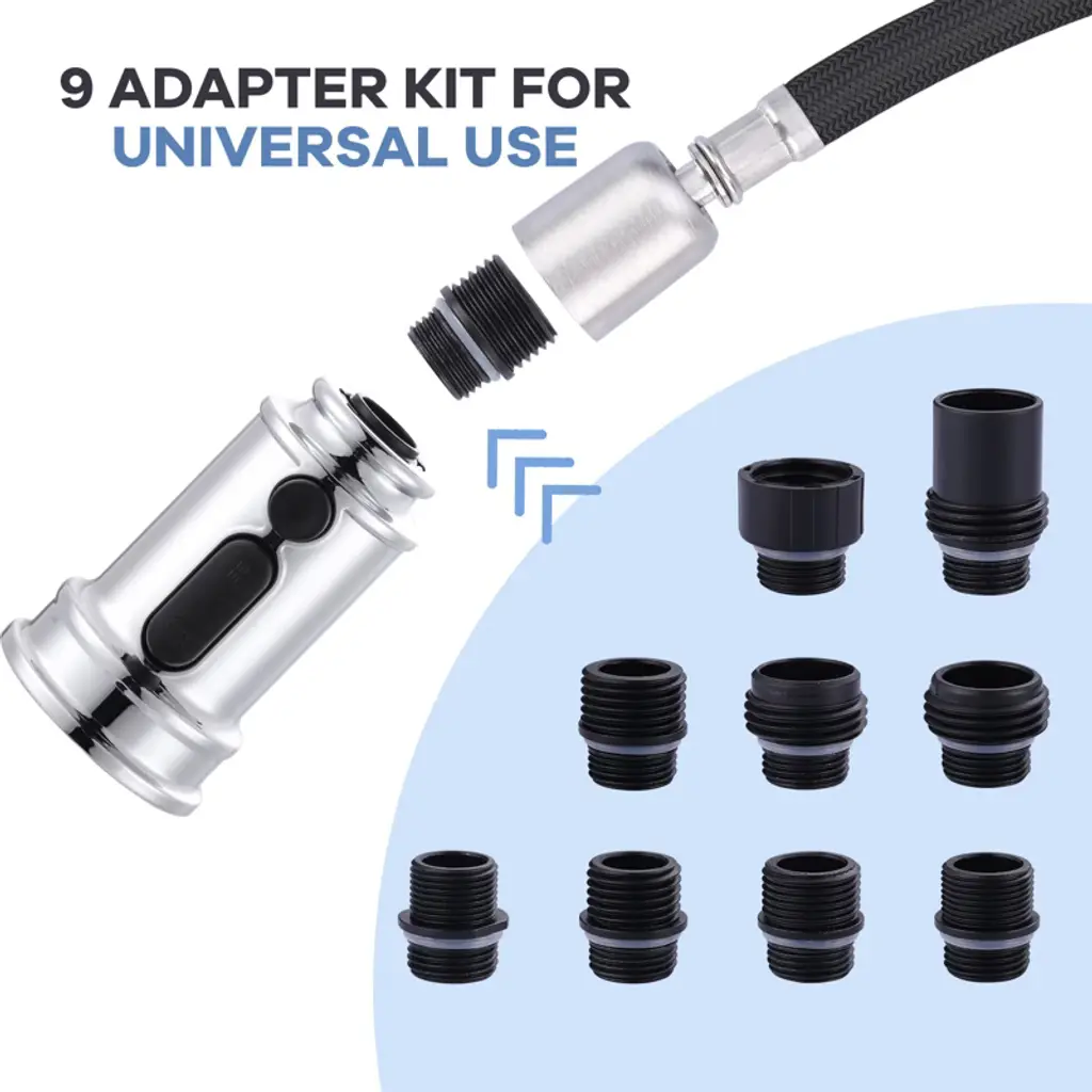 Wowow 3-function Pull Down Kitchen Faucet Head Replacement With 9-adapter In Polished Chrome