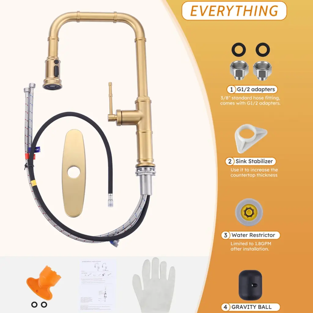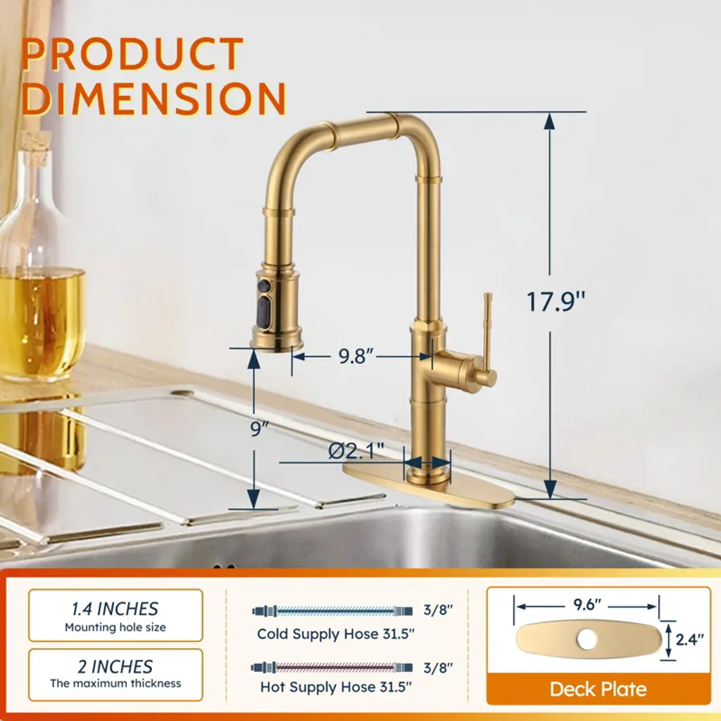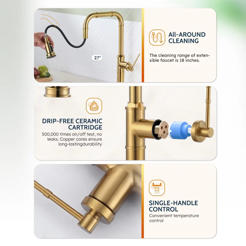Wowow 3-mode Pull Down Spray Kitchen Faucet In Gold
