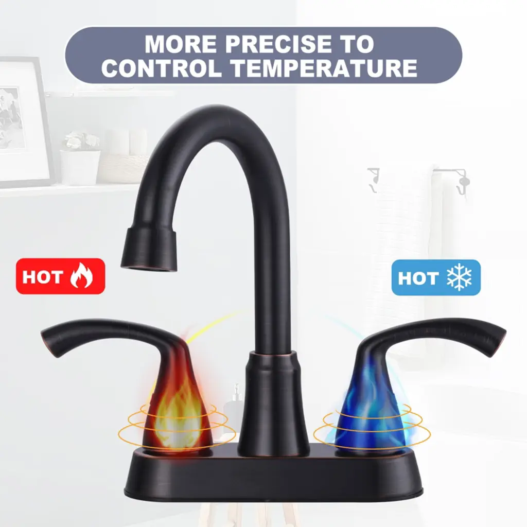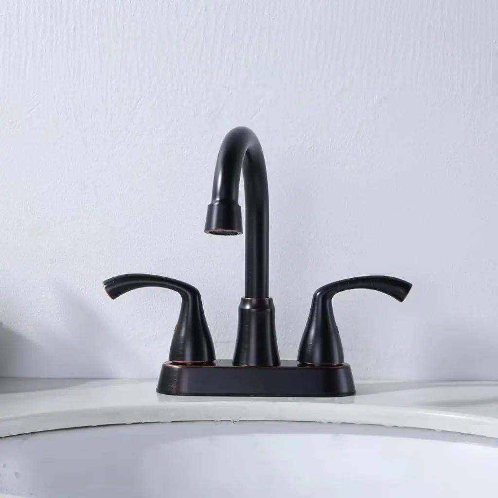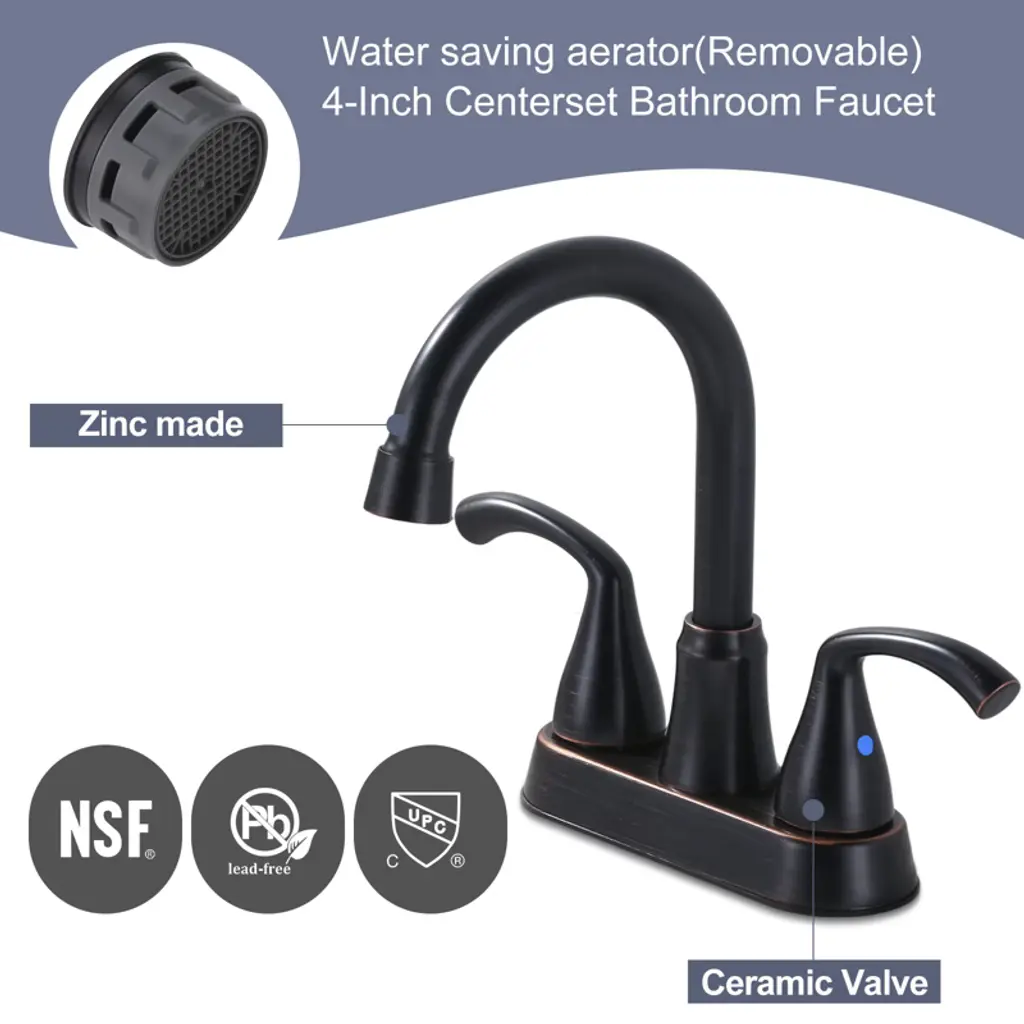 Wowow 4 In. Centerset Double Handle Bathroom Faucet In Oil Rubbed Bronze