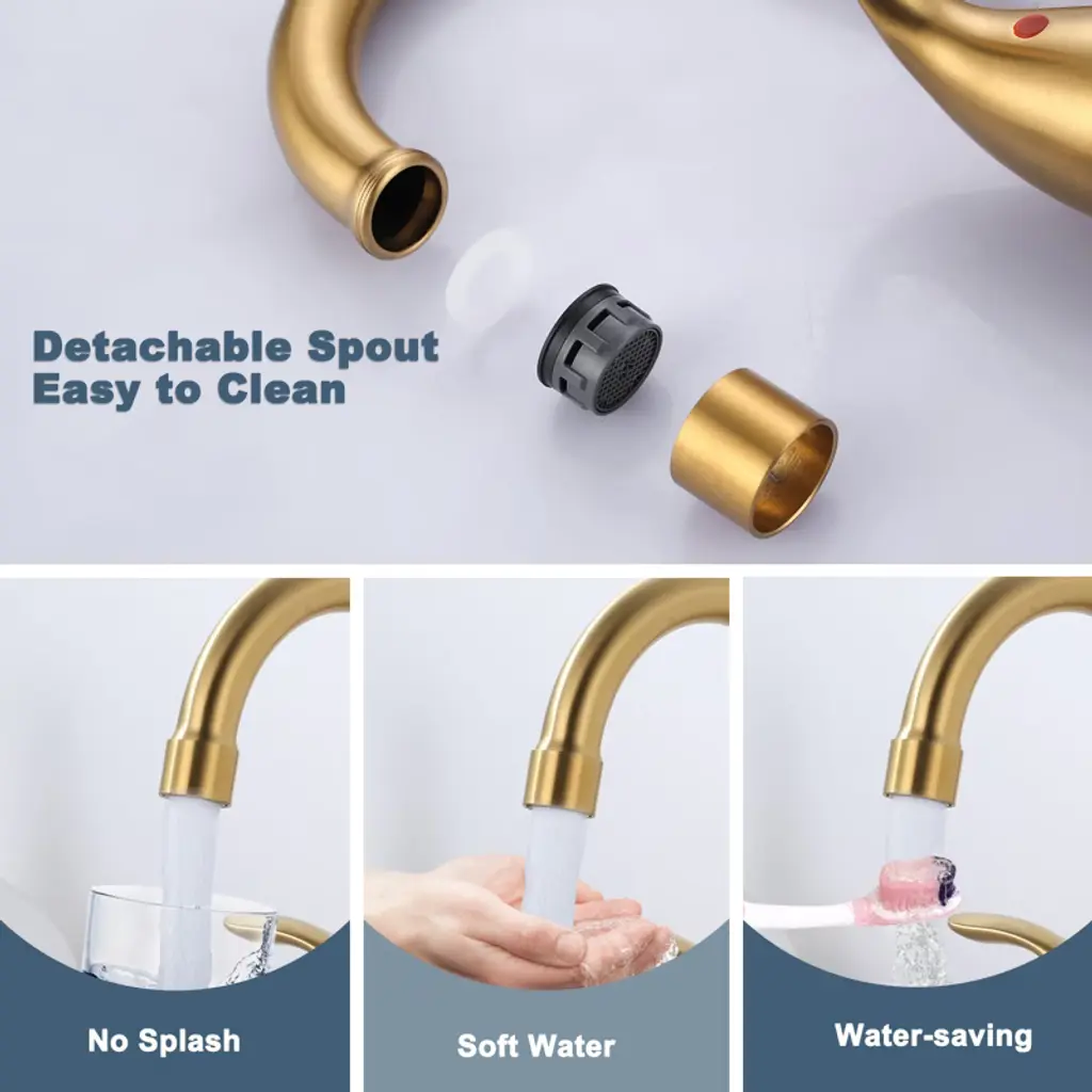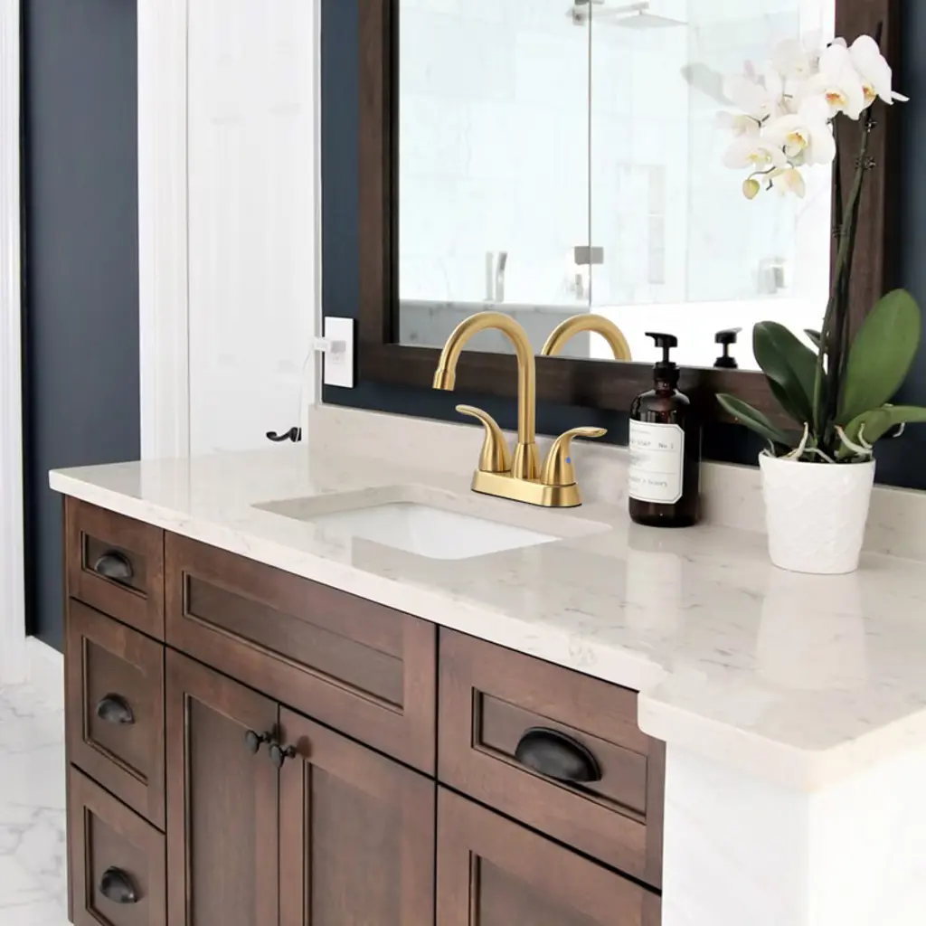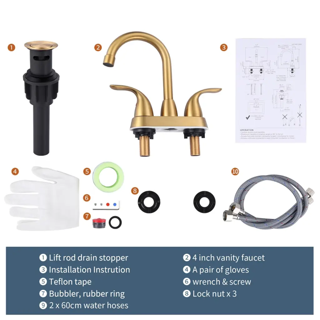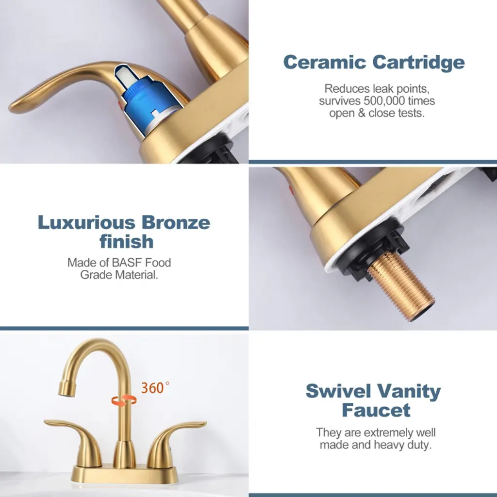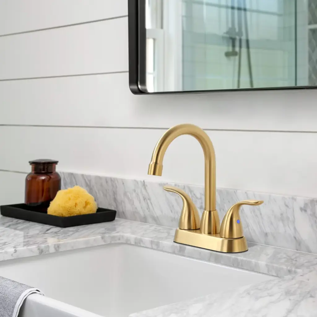 Wowow 4 In. Centerset Double-handle High Arc Bathroom Faucet In Gold