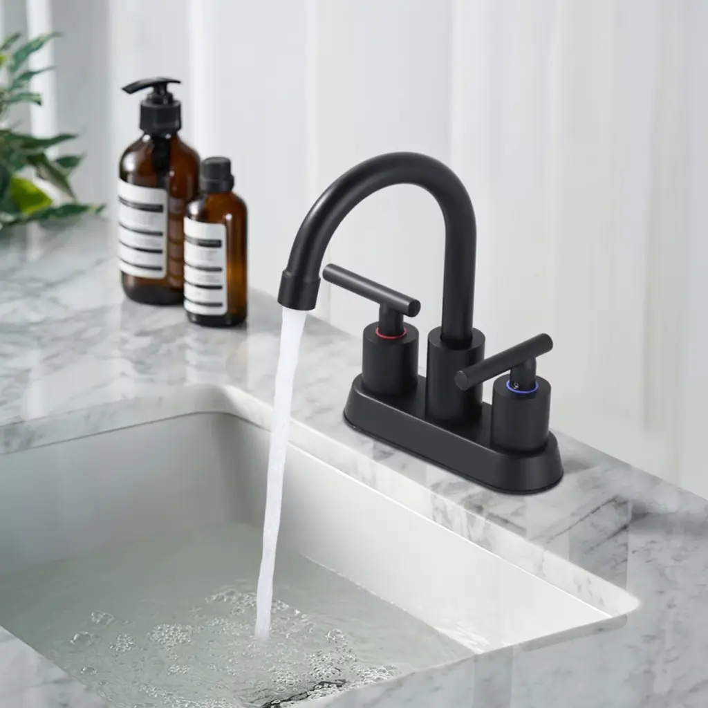 Wowow 4 In. Centerset Double Handle High Arc Bathroom Faucet With Drain Kit Included In Matte Black