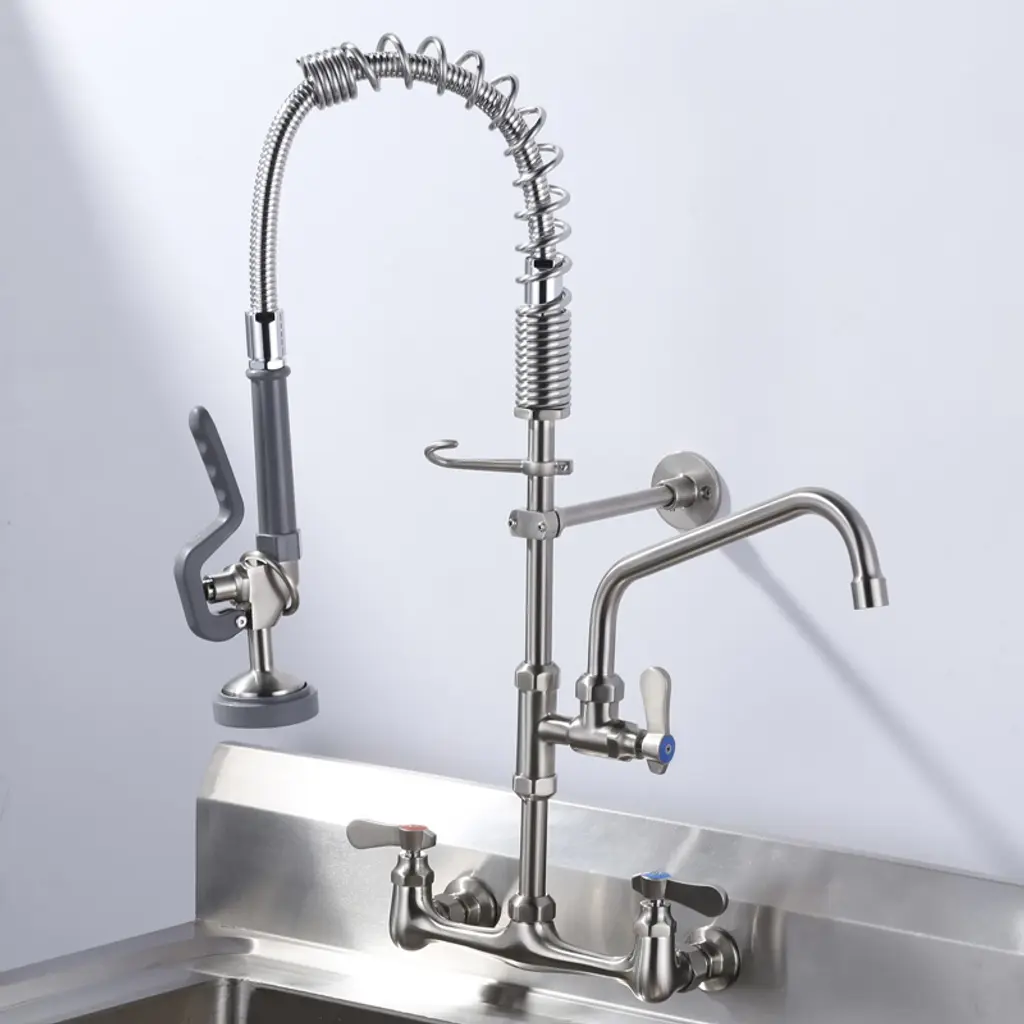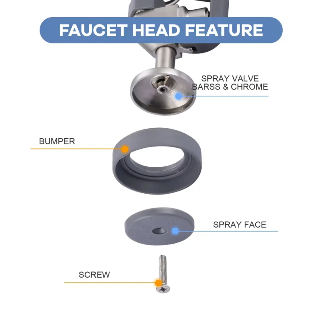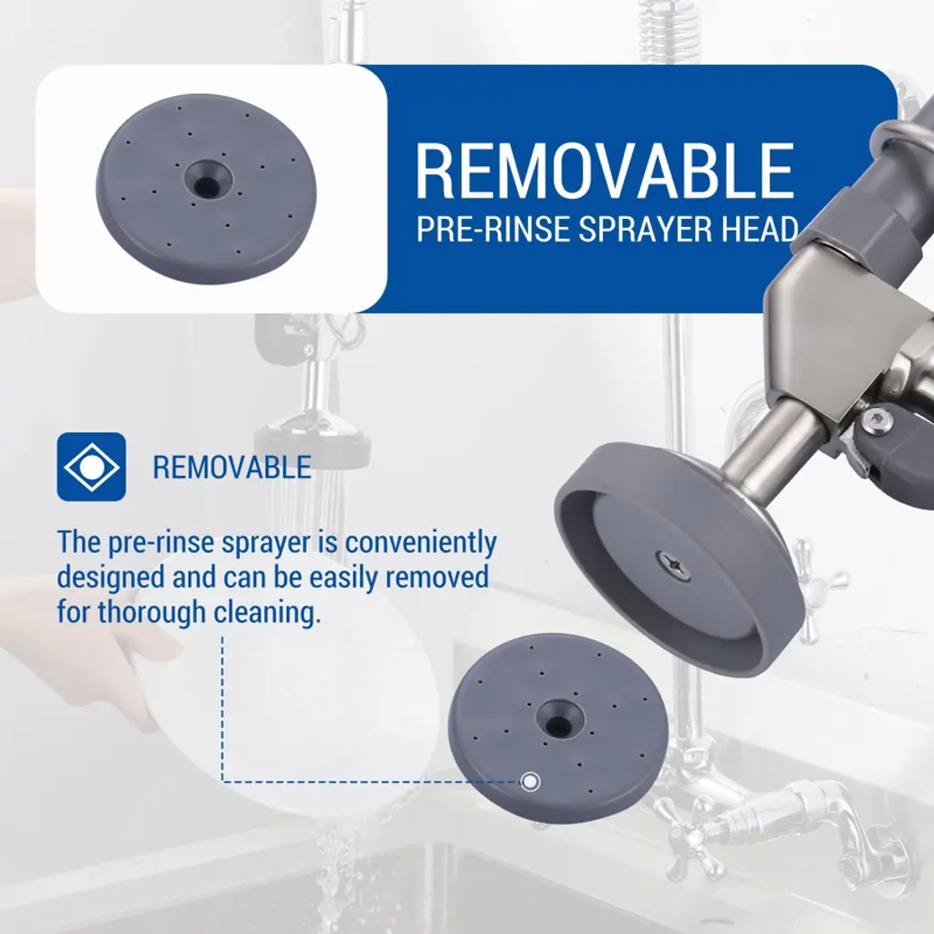 This Pre-Rinse Sprayer is made of high-quality brass in classic brushed and black colors for a luxurious look and feel. Customized for the mainstream pre-rinse commercial faucets in the market, the 1-touch handle releases powerful high-pressure jets instantly and efficiently cleans the faucet without dead ends. Equipped with innovative hold down ring design, gently press the plastic lever handle, you can easily direct the water flow outside the main spout to realize convenient diversion, and at the same time, release your hands to enjoy a freer operating experience. Exquisite craftsmanship, durability and reliability, add a touch of color to your kitchen or bathroom.