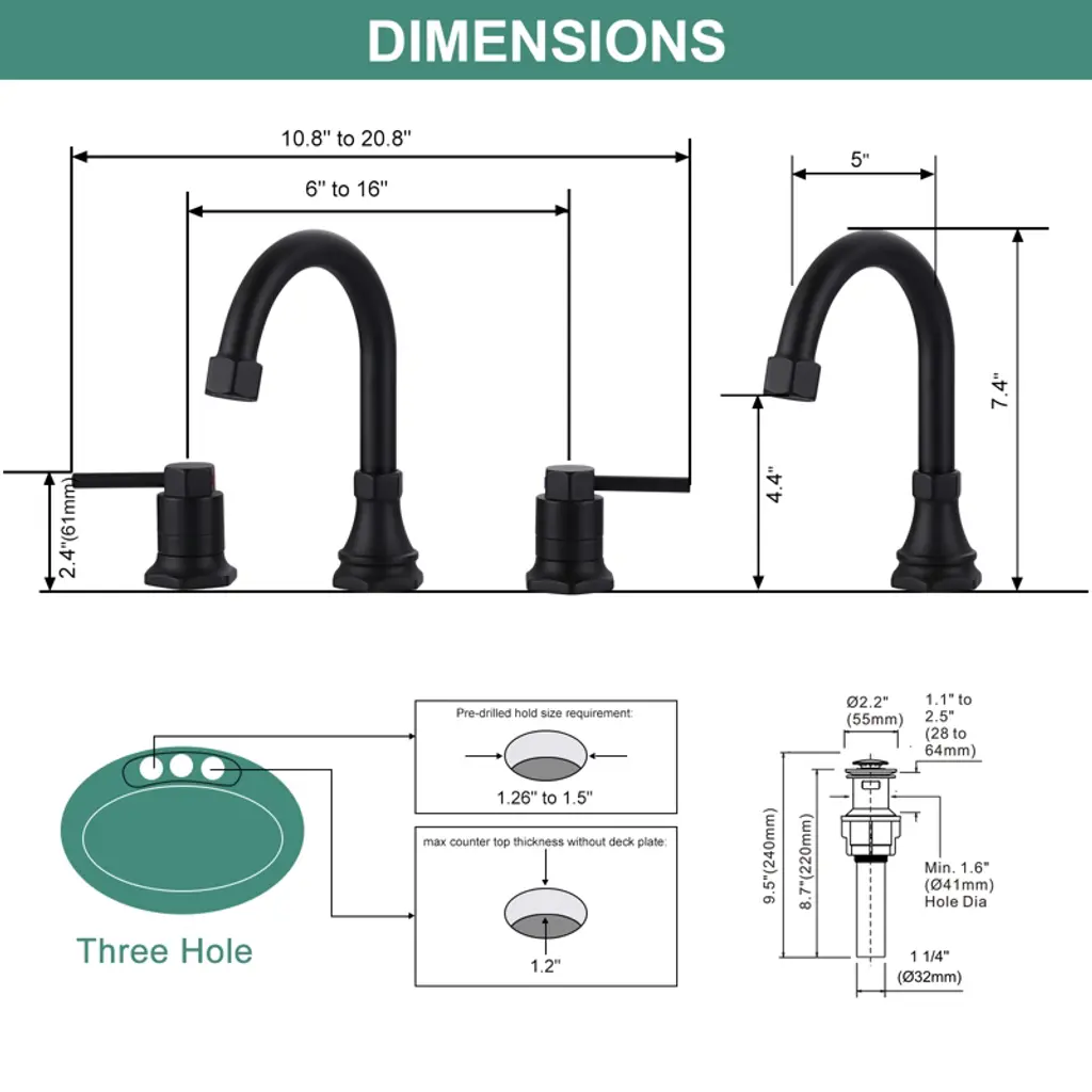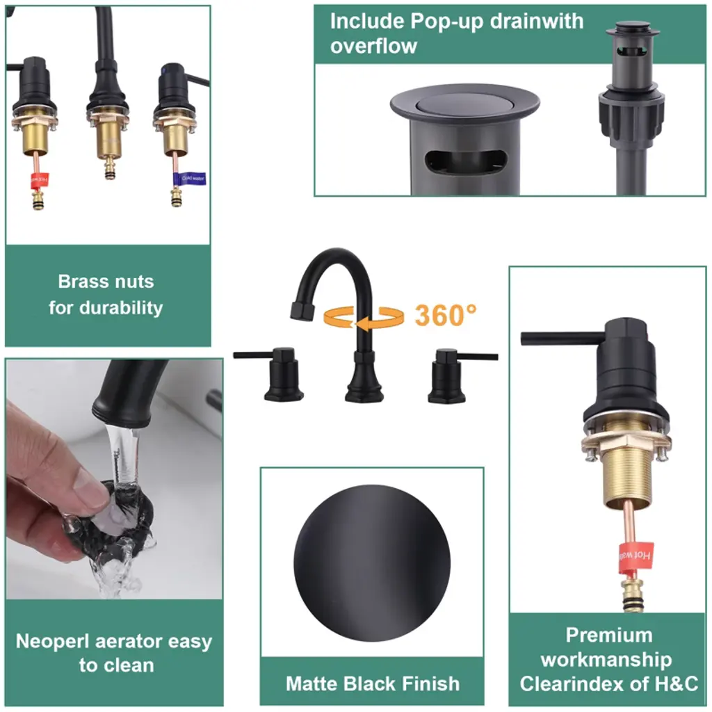 Wowow 8 In. Widespread Double Handle Bathroom Faucet With Pop-up Drain Kit In Matte Black