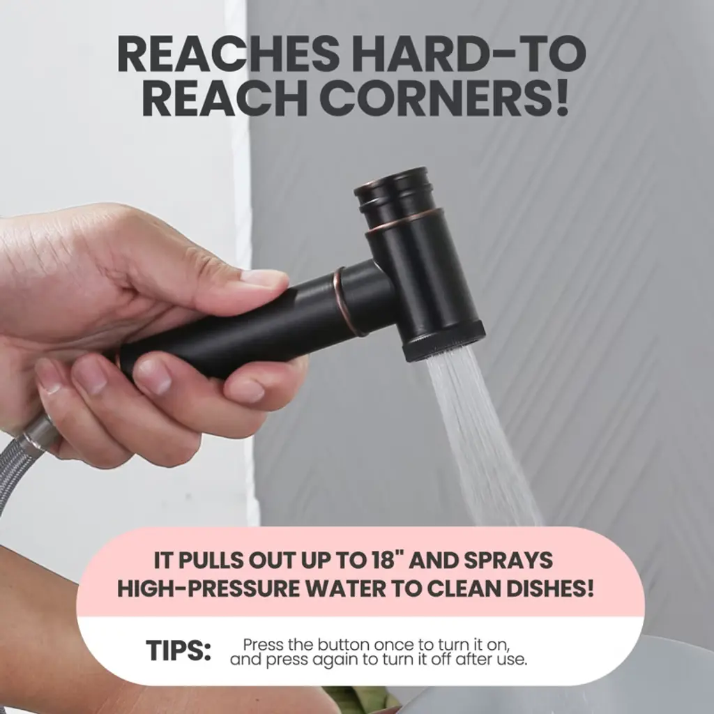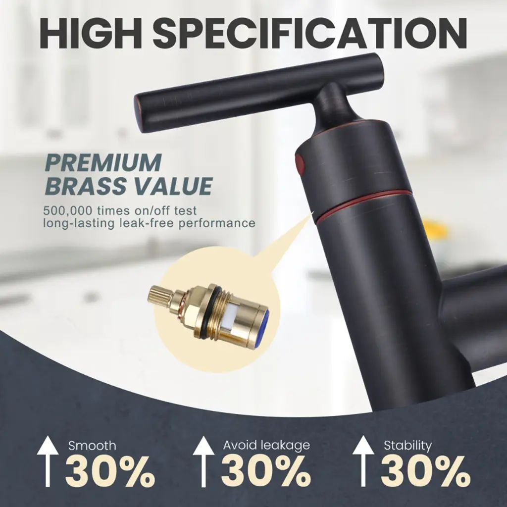 This Double Handle Brass Bridge Kitchen Faucet with Side Sprayer is a perfect blend of functionality and style. Constructed from solid brass, it guarantees durability and longevity, standing up to the rigors of daily kitchen use while resisting corrosion. Double - level handles offer a comfortable hold, allowing you to smoothly adjust the water temperature and flow by simply rotating the handles. The practical side sprayer, featuring a circular knob for precise water flow control, makes rinsing dishes, filling pots, and cleaning the sink a breeze. Its distinctive bridge style enhances any kitchen's look, adding a modern, sophisticated touch. Enhance your kitchen experience with this kitchen faucet.