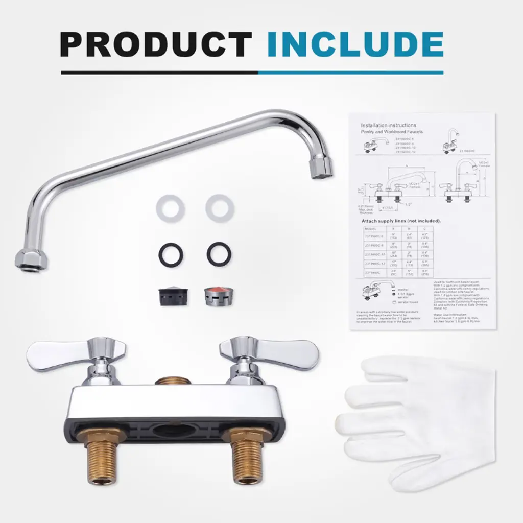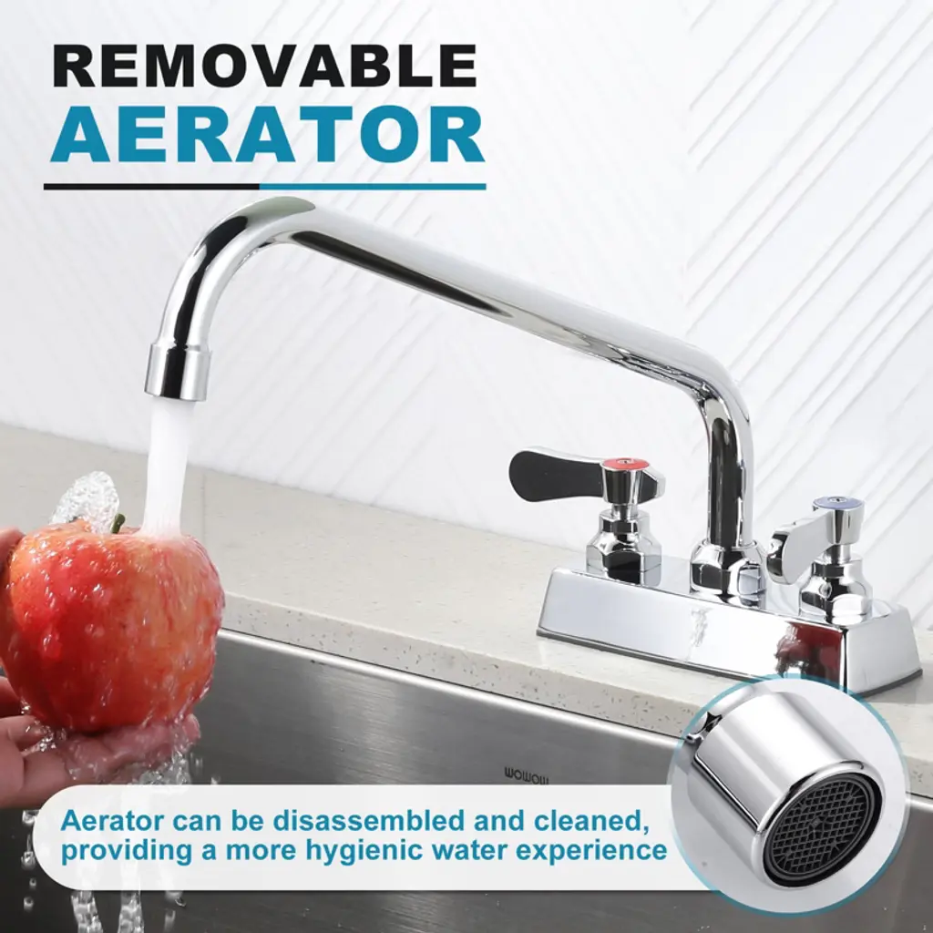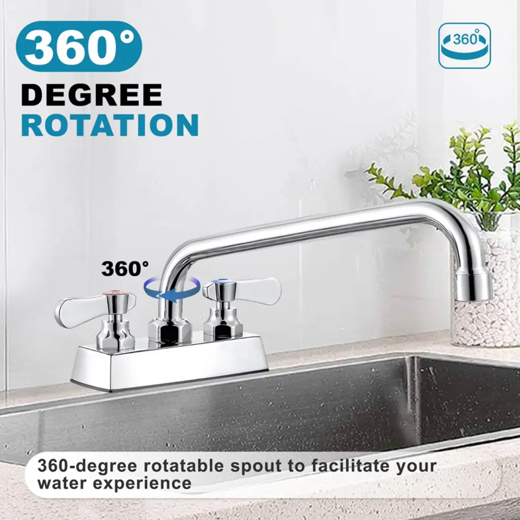 This kitchen faucet is a kitchen helper. With its 360° swivel nozzle, it has the flexibility to direct water where it's needed, whether it's a single or double sink, giving you plenty of room for all kinds of kitchen tasks. The dual handles allow you to precisely control the water temperature and flow rate, making it easy to meet a wide range of needs. The material is made of solid brass to protect your family's health, corrosion resistance, and durability. Multi-functional scenarios are suitable for the kitchen, dining room, laundry room, and even outdoors. The built-in high-efficiency aerator reduces splashing, saves water, and reduces noise. 2-hole installation, stable and non-shaking. The quick-connect design makes installation easy; follow the instructions, even a novice can easily handle it, bringing convenience and practicality to your kitchen.