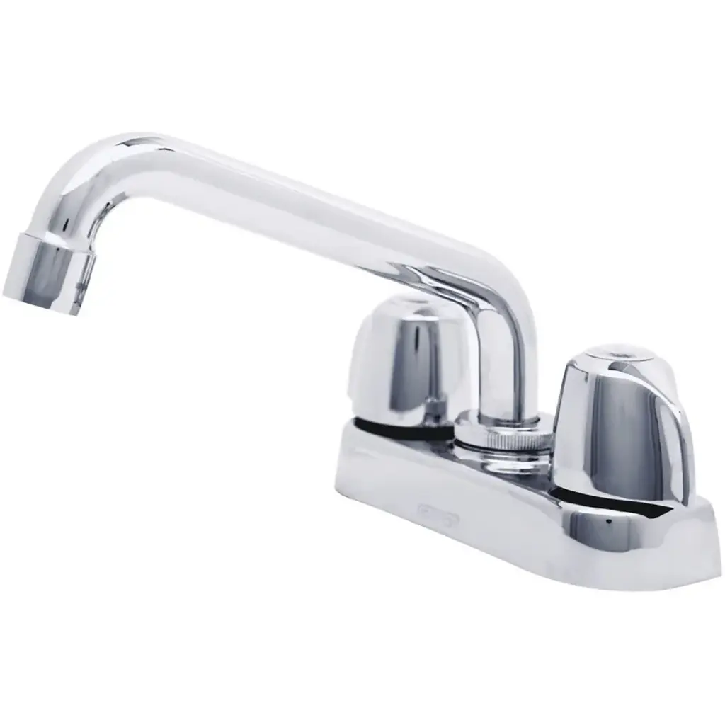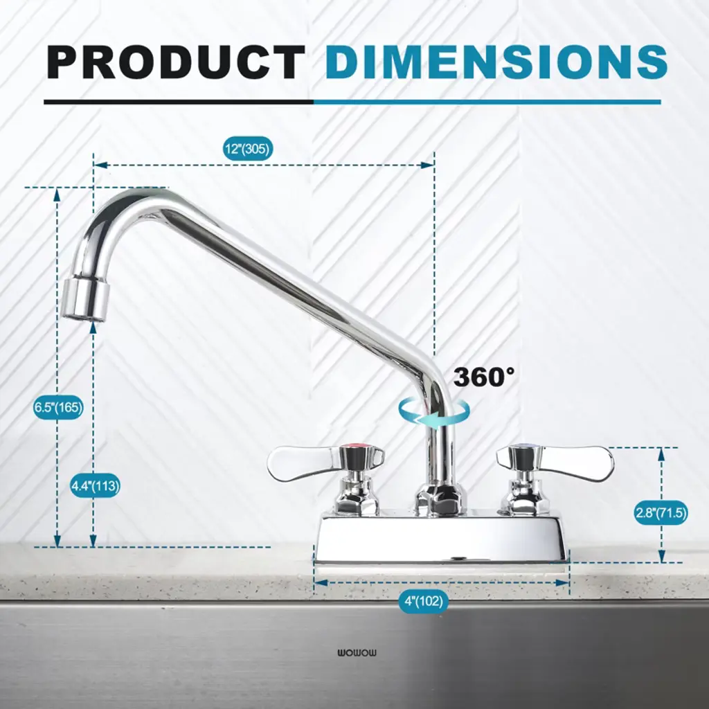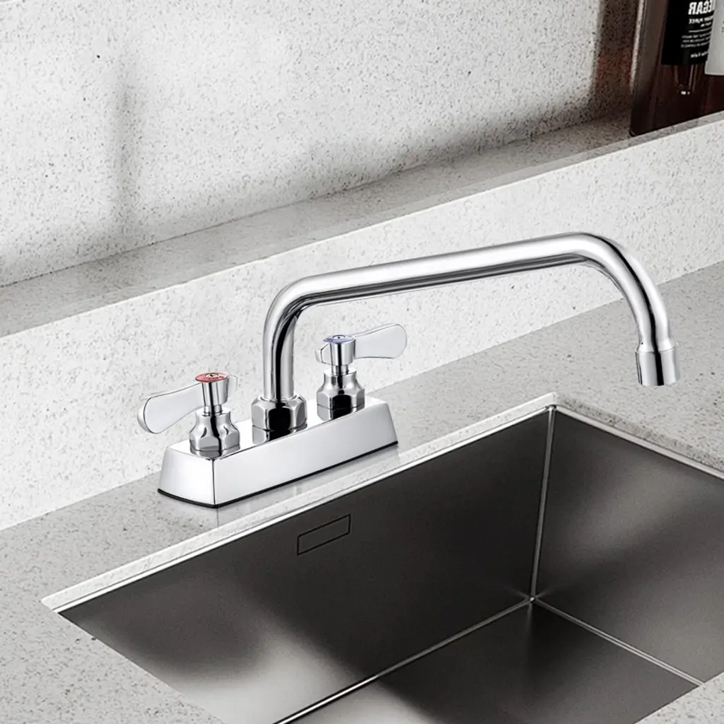 Wowow Commercial Faucet With 12 In. Swivel Spout, Double Handle Deck Mount Standard Kitchen Faucet In Polished Chrome