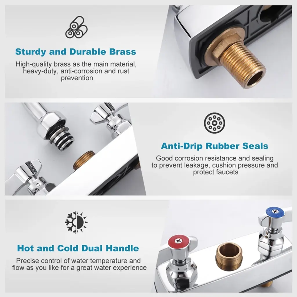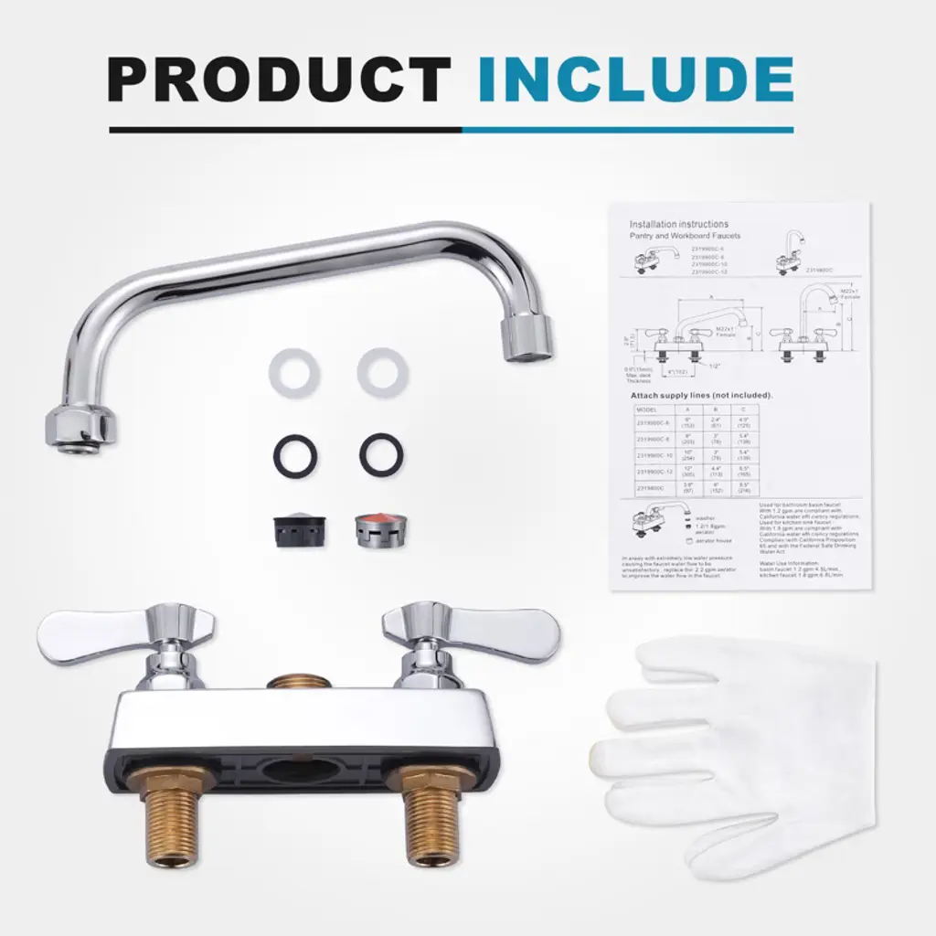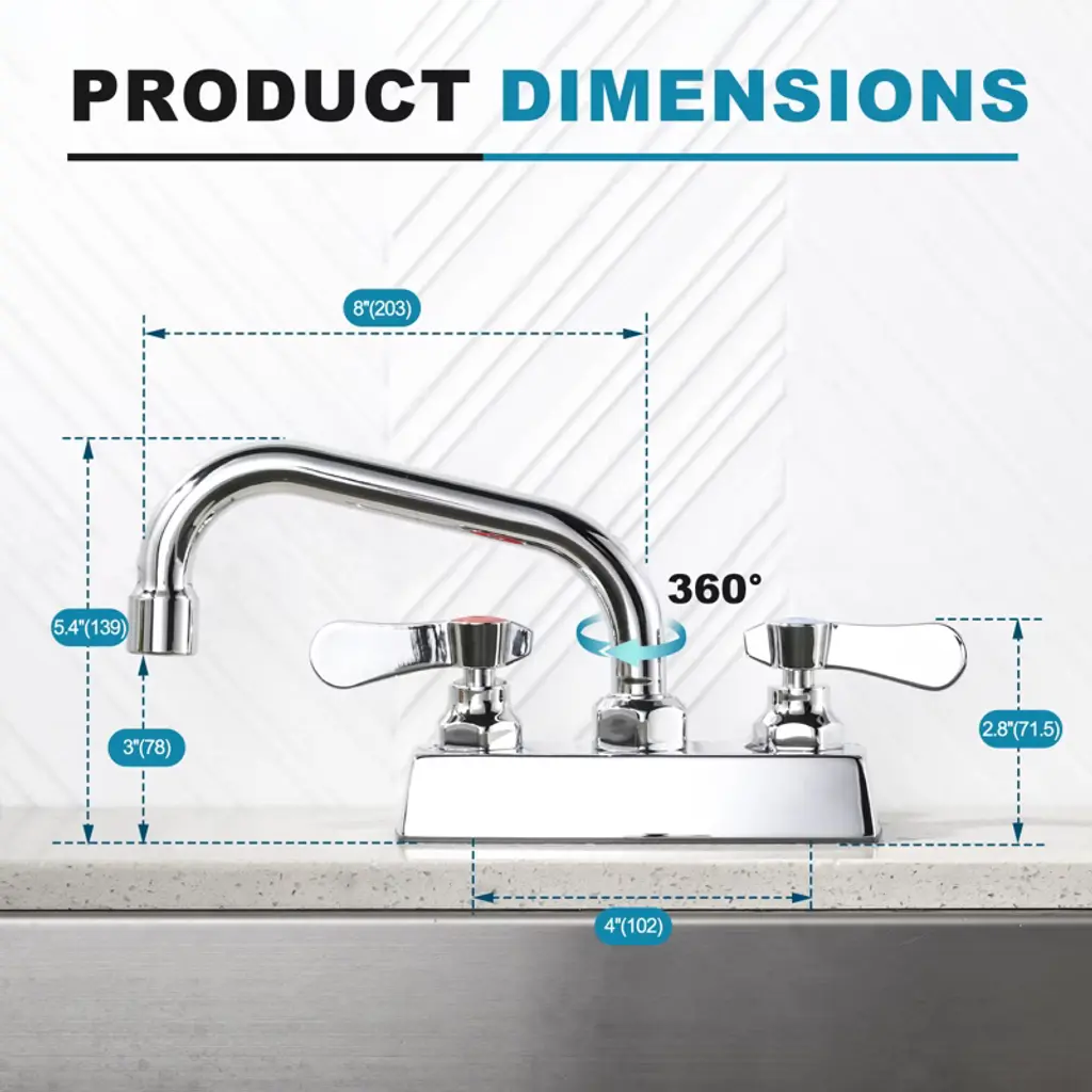 Wowow Commercial Faucet With 8 In. Swivel Spout, Double Handle Deck Mount Standard Kitchen Faucet In Polished Chrome