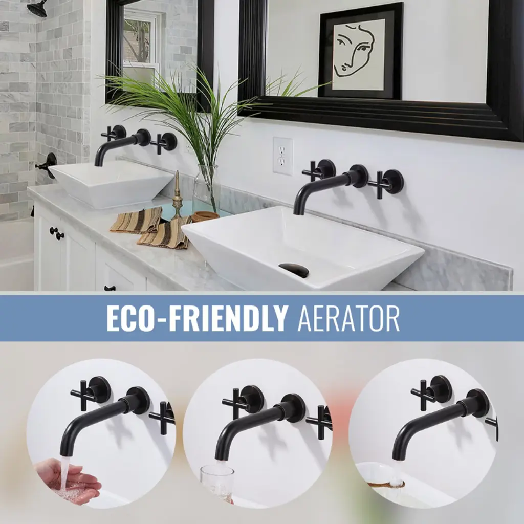 360° swivel faucet with full range can meet your daily cleaning. The wall mount brushed nickel bathroom faucet makes water better access to the basin sink. Wall mount bathroom sink faucet can fit most of places. Made of solid brass for durability, high quality controls with strong tarnish and corrosion resistance. Designed for use with standard 1/2 in. U.S. (1/2 NPT) plumbing connections, easy installation.