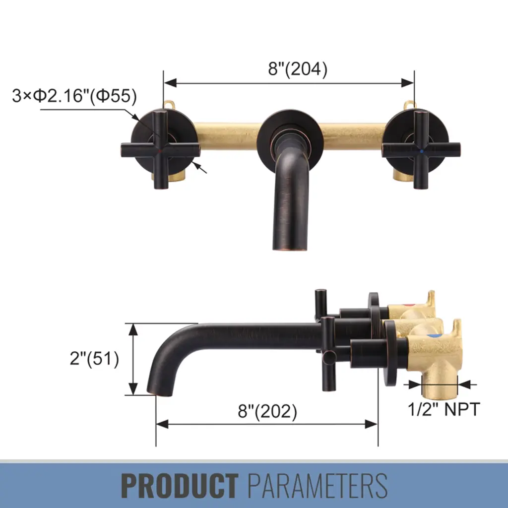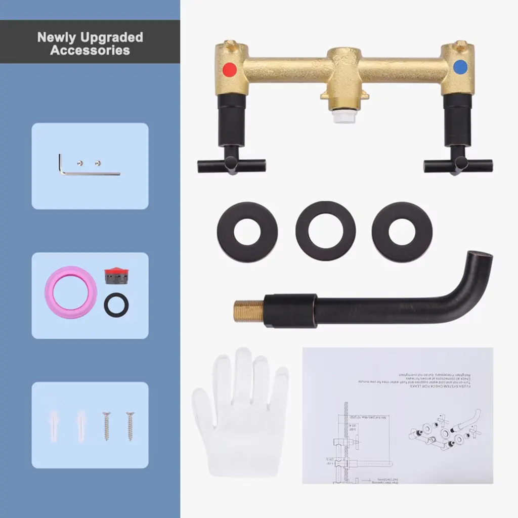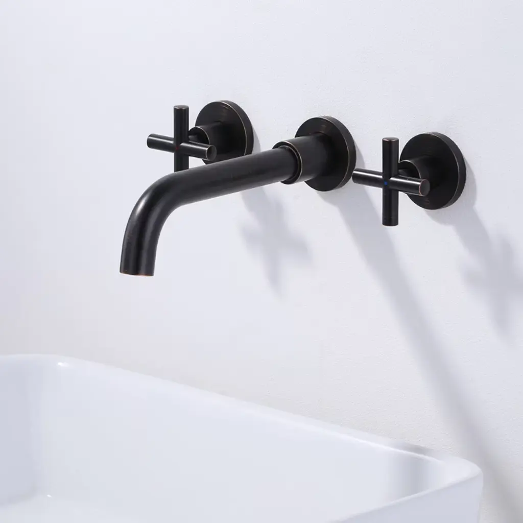 Wowow Double-handle Wall Mounted Bathroom Faucet In Oil Rubbed Bronze