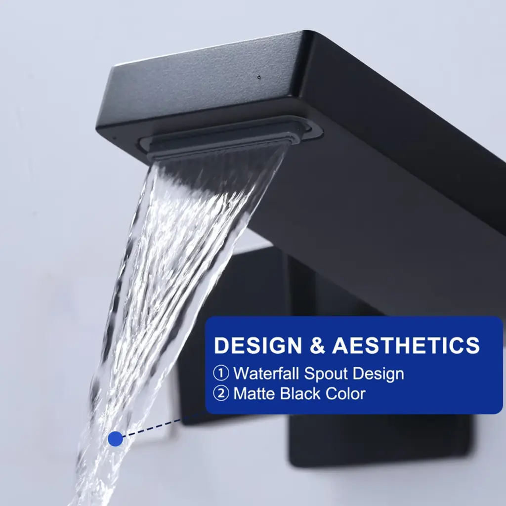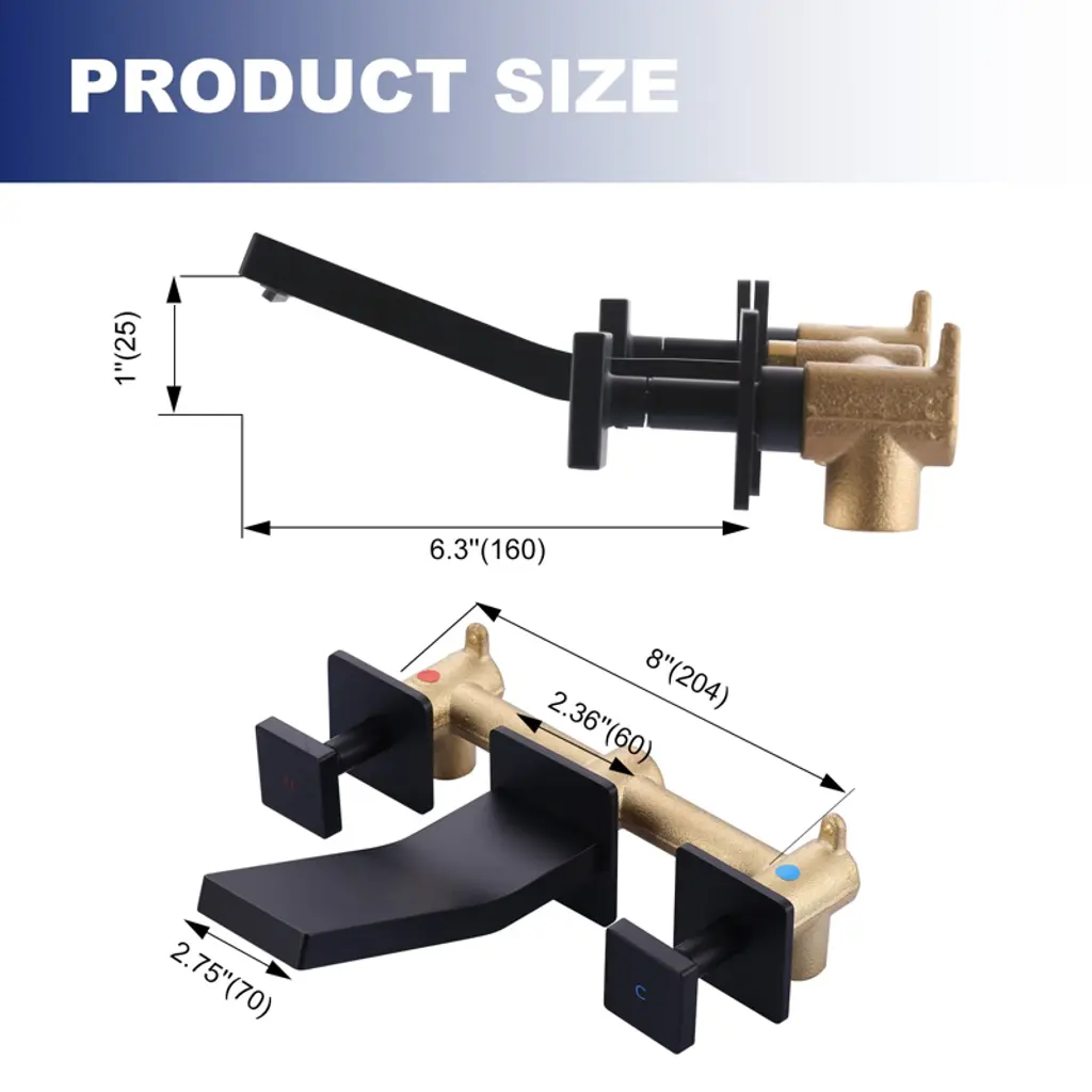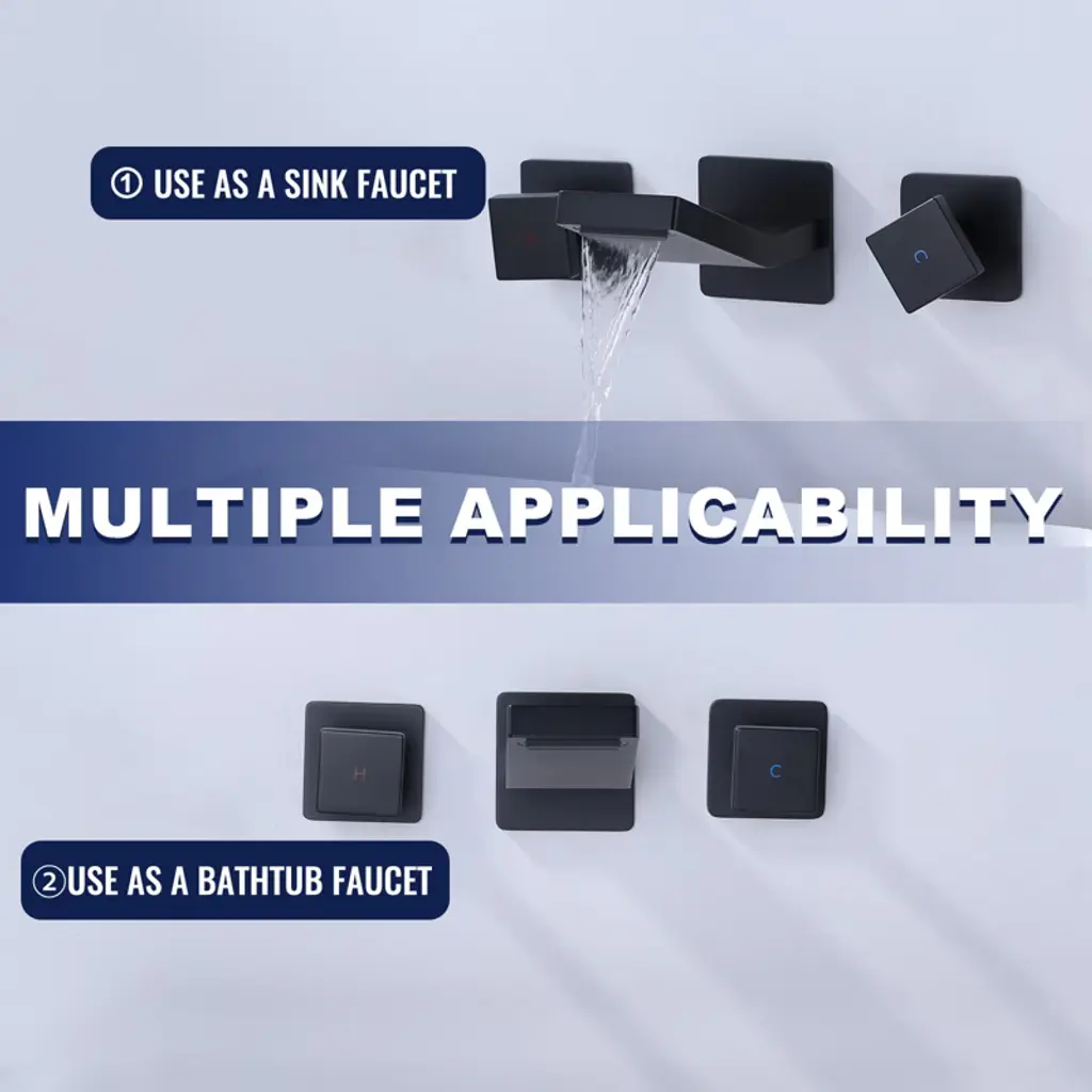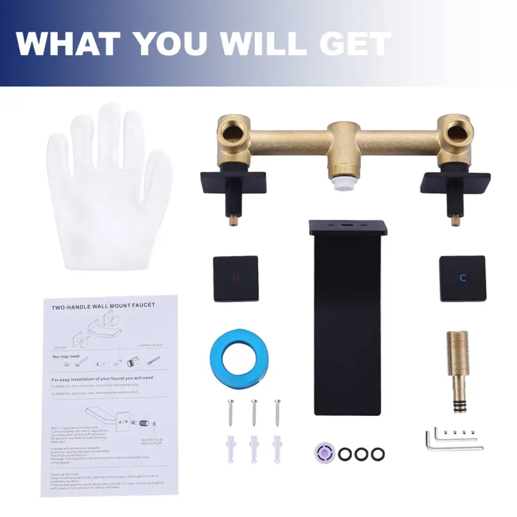 Wowow Modern Double Handle Wall Mounted Bathroom Faucet With Waterfall Spout In Matte Black