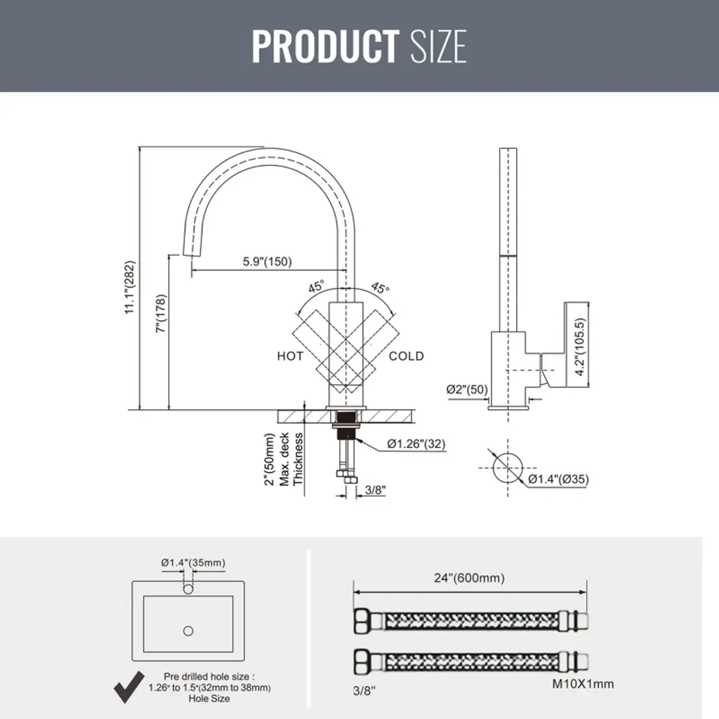 Upgrade your home bar with our stylish and functional bar sink faucet, Crafted from high-quality materials, this faucet is built to last. Its sleek and modern design adds a touch of elegance to any space, creating a sophisticated atmosphere. The single lever handle ensures smooth operation, allowing you to effortlessly control the water flow and temperature.