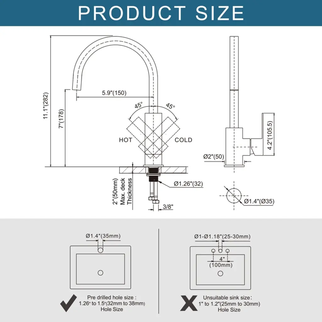 Upgrade your home bar with our stylish and functional bar sink faucet, Crafted from high-quality materials, this faucet is built to last. Its sleek and modern design adds a touch of elegance to any space, creating a sophisticated atmosphere. The single lever handle ensures smooth operation, allowing you to effortlessly control the water flow and temperature.