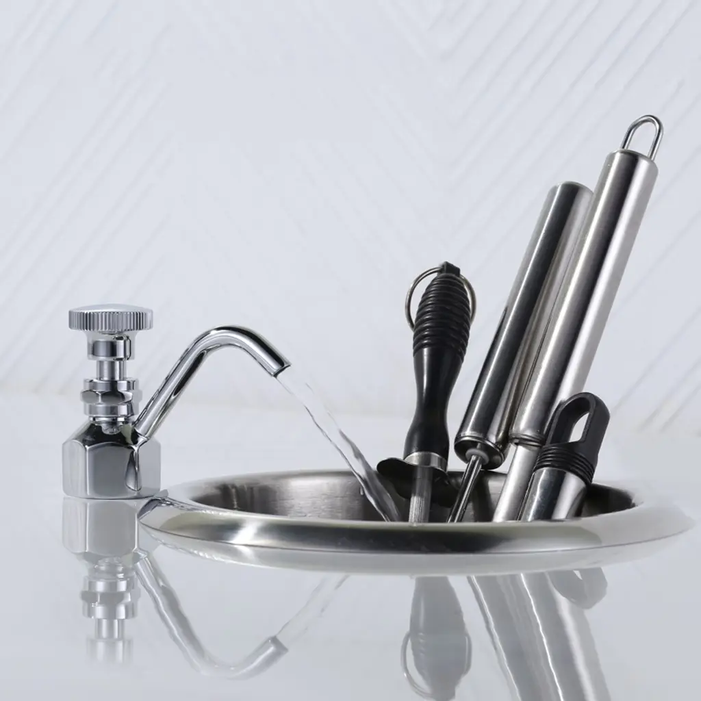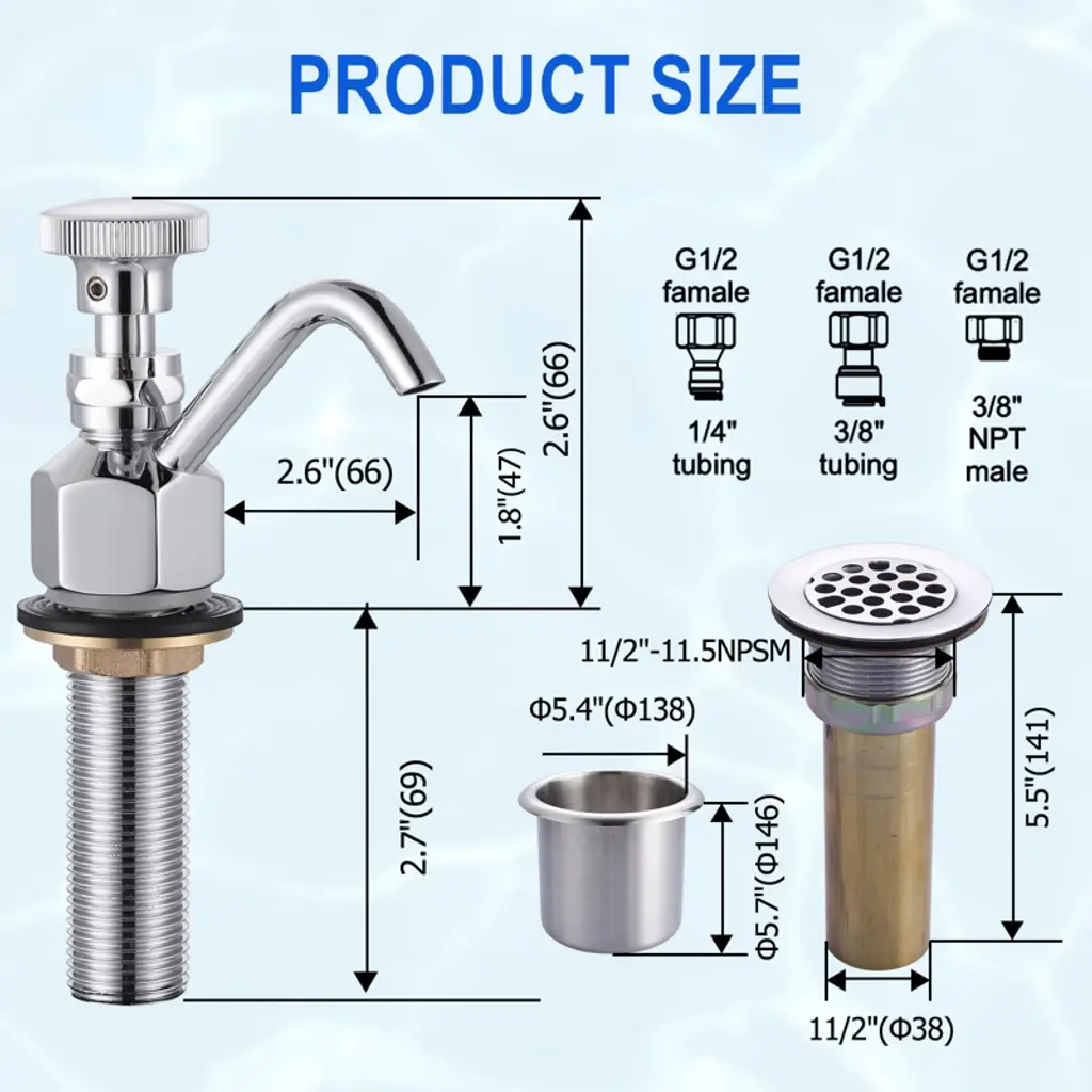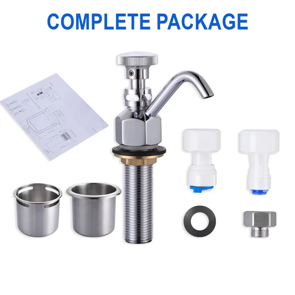Dipperwell kitchen faucet body is made of high quality brass, chrome-plated surface is rust-proof and corrosion-resistant, easy to clean and durable. Wide range of uses, can clean coffee spoons, soup spoons and other types of tableware. Built-in overflow container, waterproof overflow. Comes with bowl cover, includes outer and inner sinks with brass drain. Flow rate 0.4GPM, rotate to adjust the water flow. Single hole installation, simple design, easy to install.