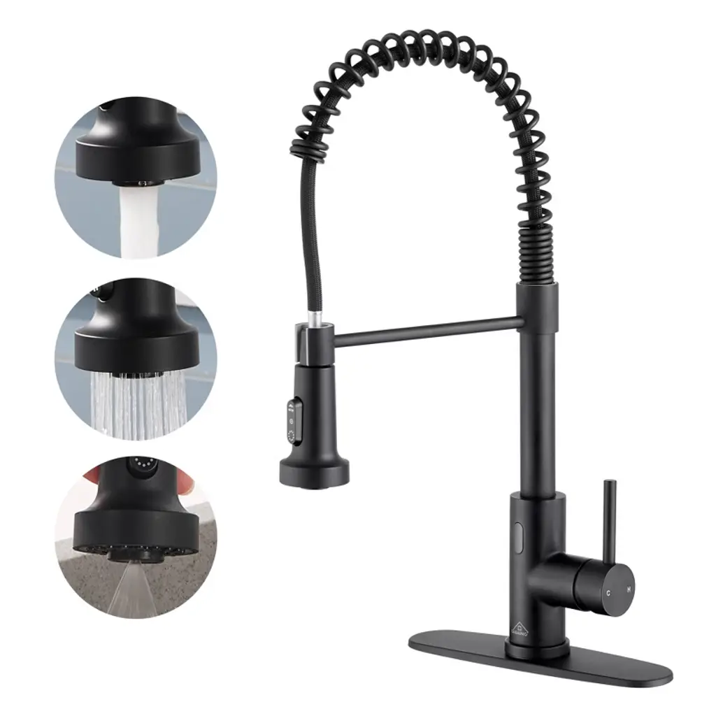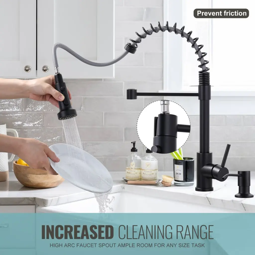 Wowow Single Handle Pull Down Sprayer Kitchen Faucet With Soap Dispenser, Pull Out Spray Wand In Matte Black