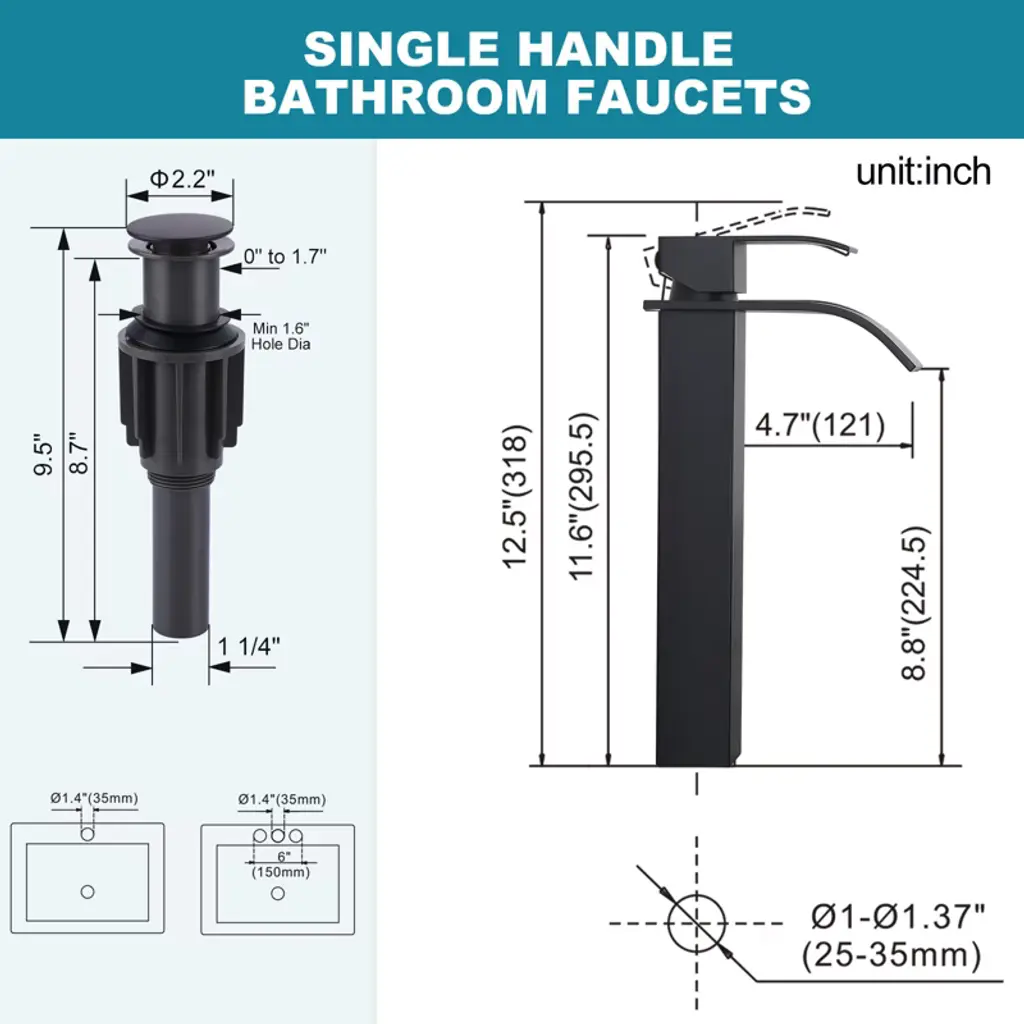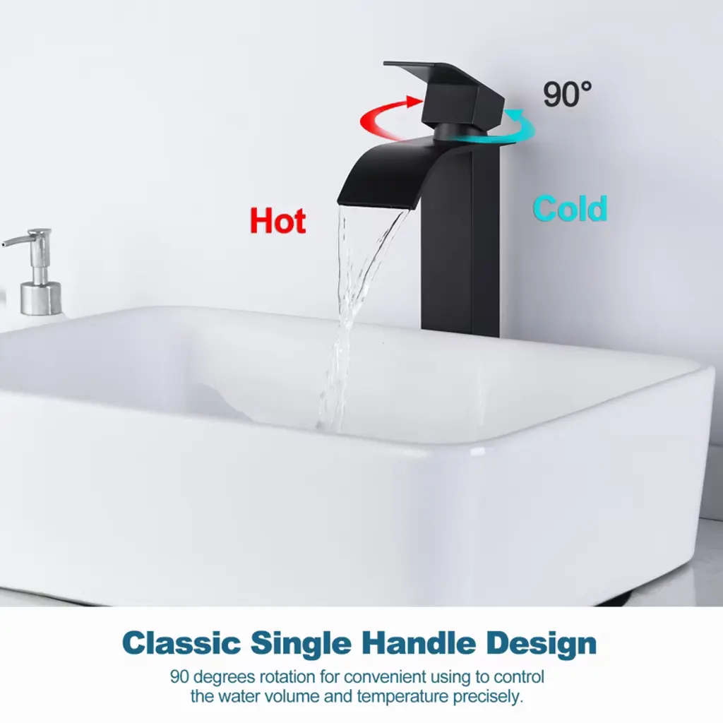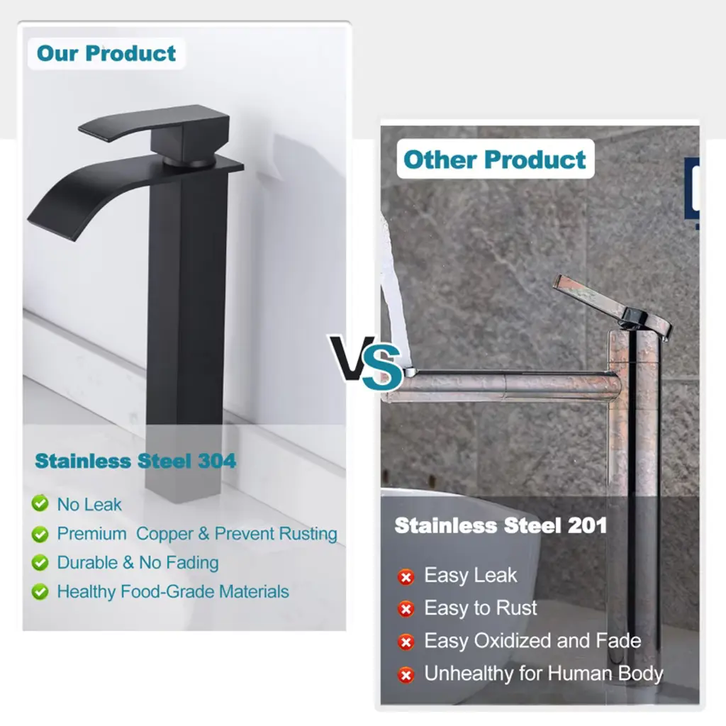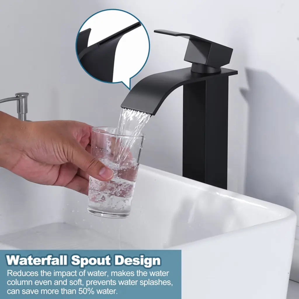 Waterfall flow, indulge in a luxurious bathing experience. This faucet features a waterfall-style spout design, with a 2.4-inch wide spout delivering an impressive waterfall effect. It is made of 304 stainless steel with a wear-resistant layer, ensuring durability. The tall faucet pairs beautifully with a vessel sink, becoming a striking highlight in the bathroom. The single-hole, single-handle design is minimalistic yet elegant, offering you an exceptional and convenient water-use experience.