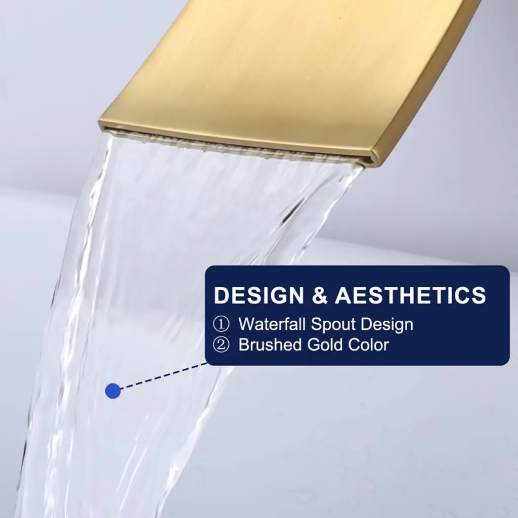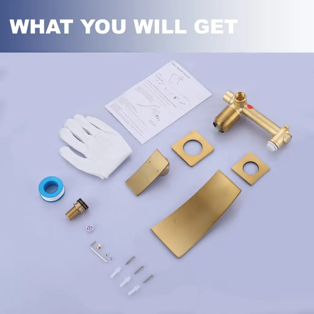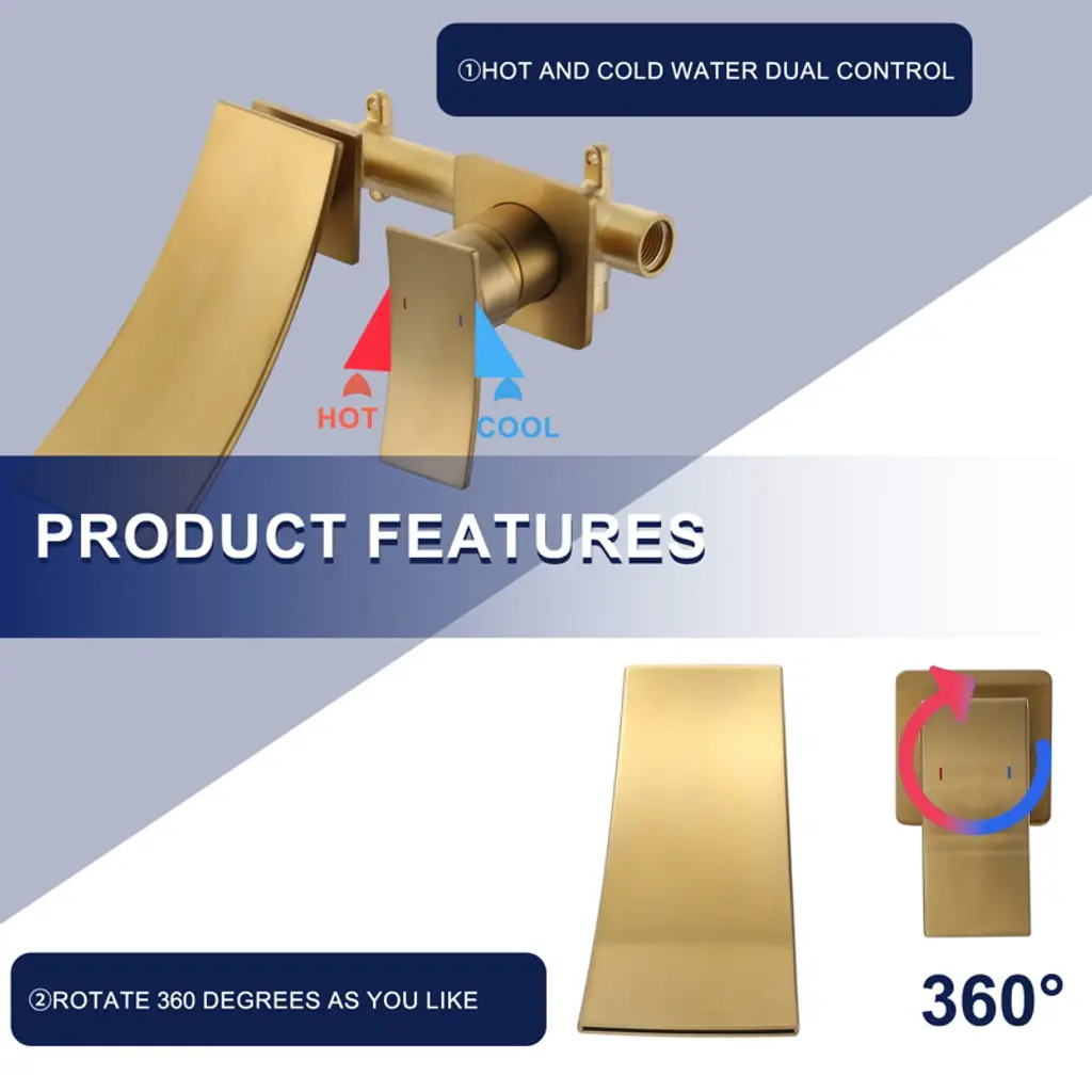 Wowow Single Handle Wall Mounted Waterfall Bathroom Basin Faucet In Gold