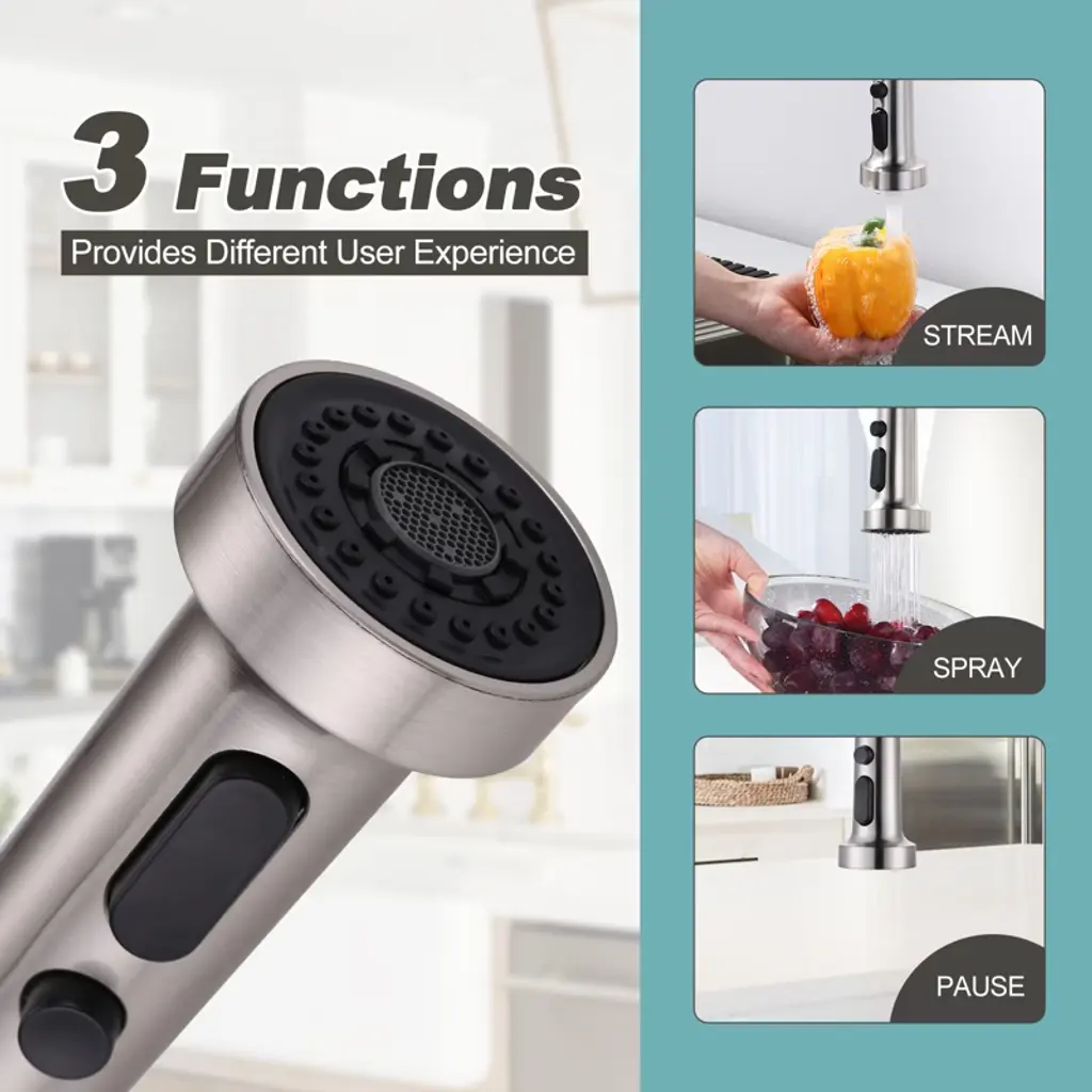 Wowow Stainless Steel Single Handle Pull Down Sprayer Kitchen Faucet In Brushed Nickel