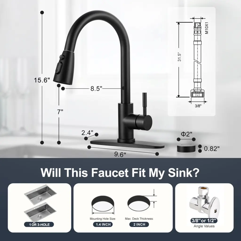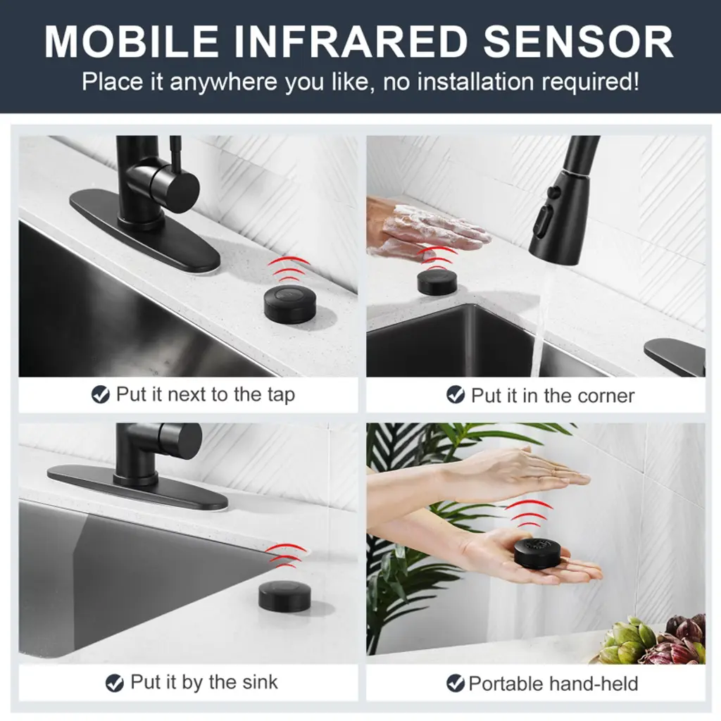 Wowow Touchless Single-handle Pull Down Sprayer Kitchen Faucet, Mobile Motion Sensor Kitchen Sink Faucet In Matte Black