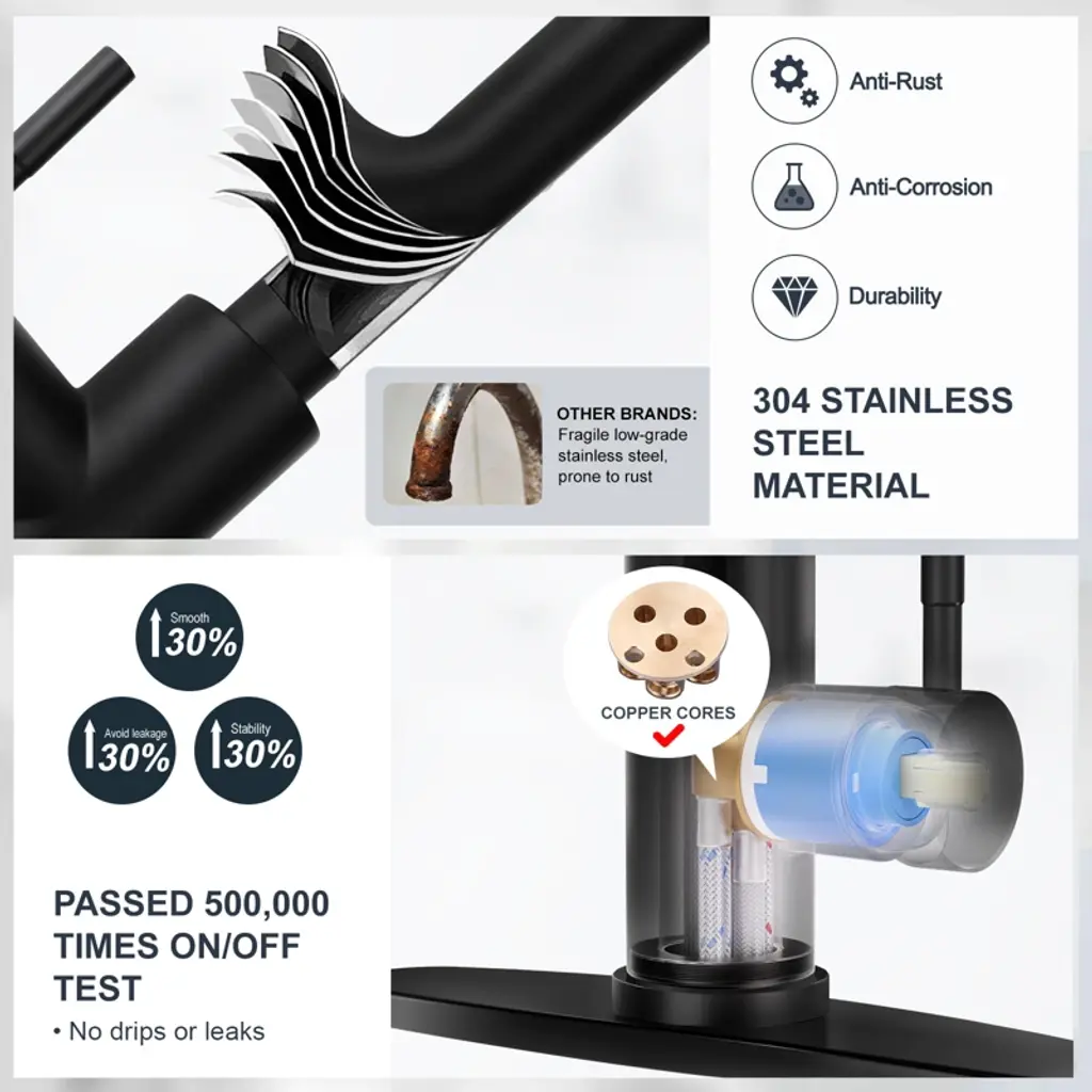 If you want a hands-free experience but are limited by difficult installation environments such as cramped or strong direct Sunlight interference, then it will also open up more possibilities for you. This touchless kitchen faucet is a great addition to any modern kitchen. This faucet stands out by a portable sensor, which can be placed wherever you like for a better experience. It is made of high quality stainless steel that will resist rust and corrosion. The faucet is easy to install and it comes with all the necessary hardware and instructions.
