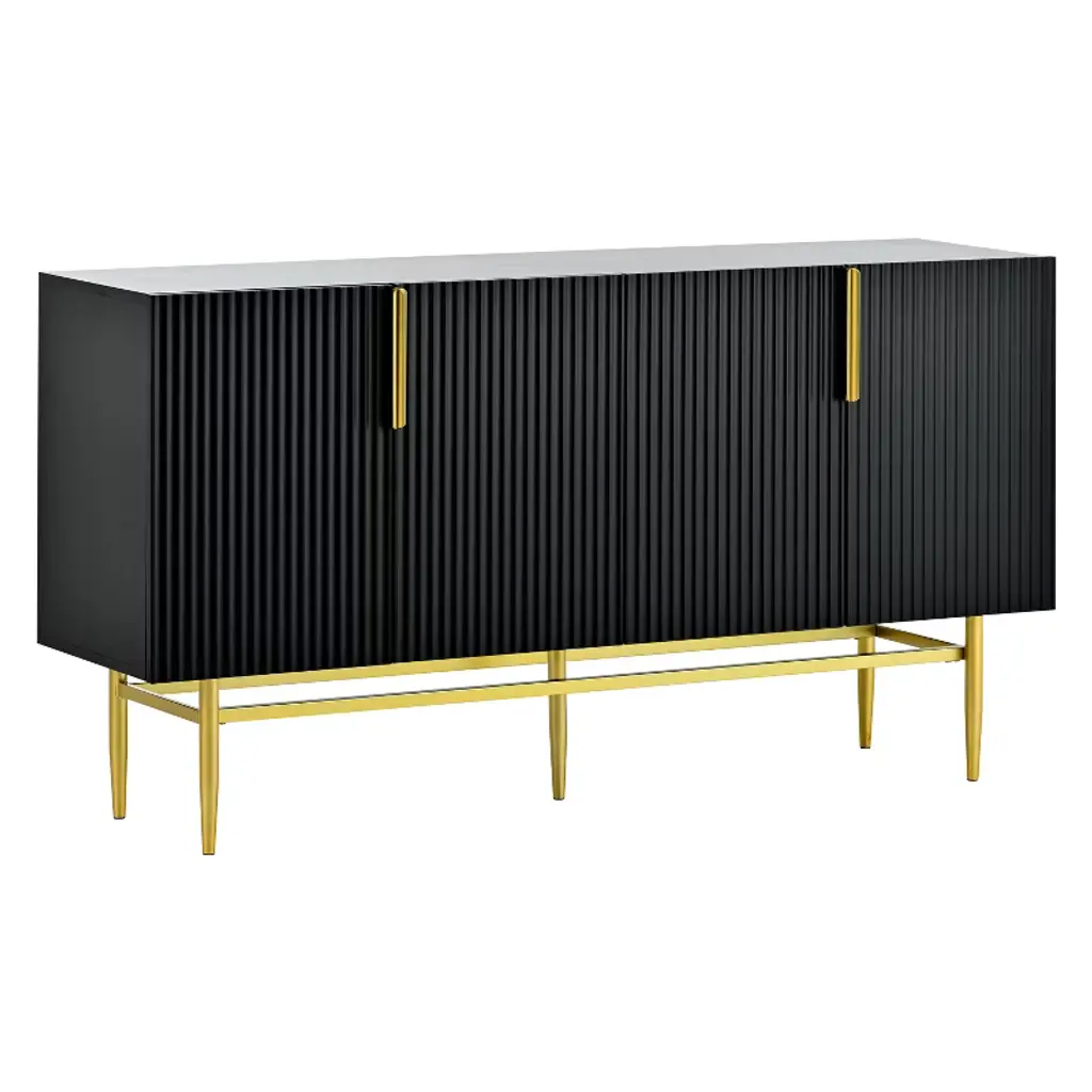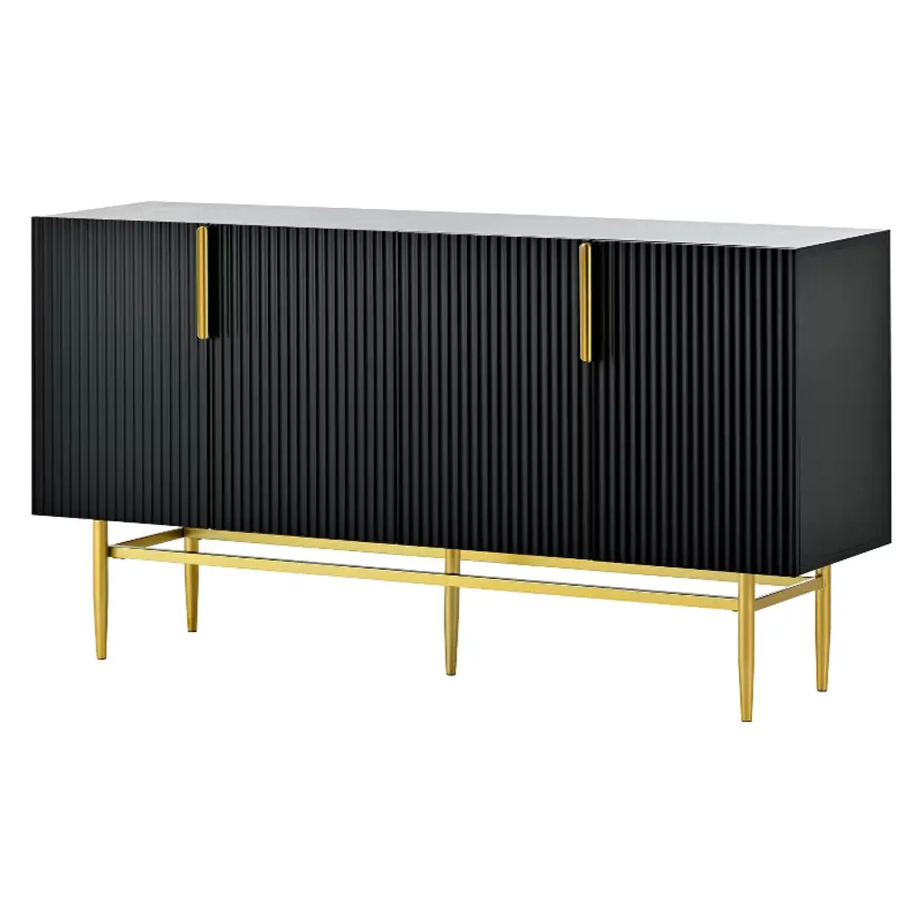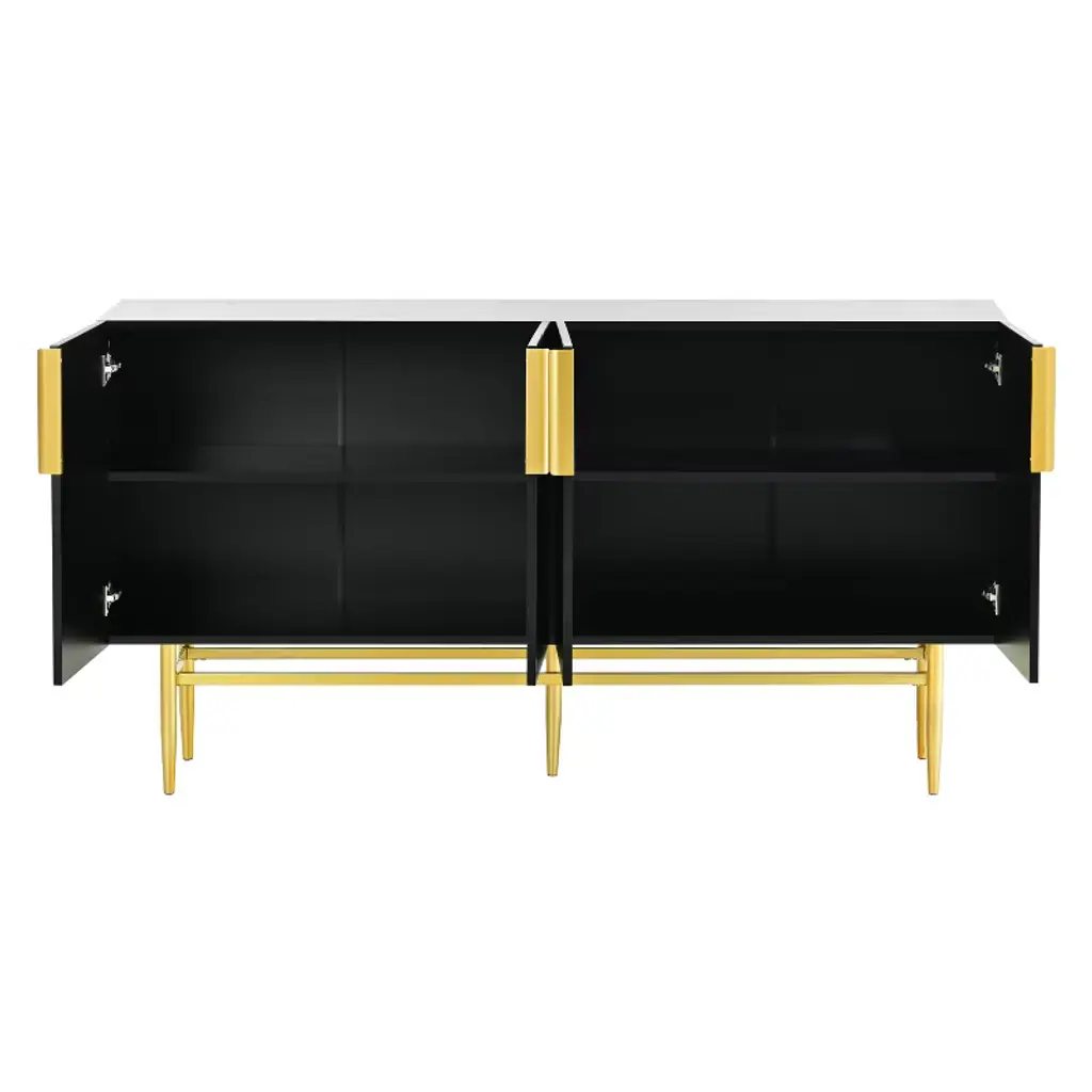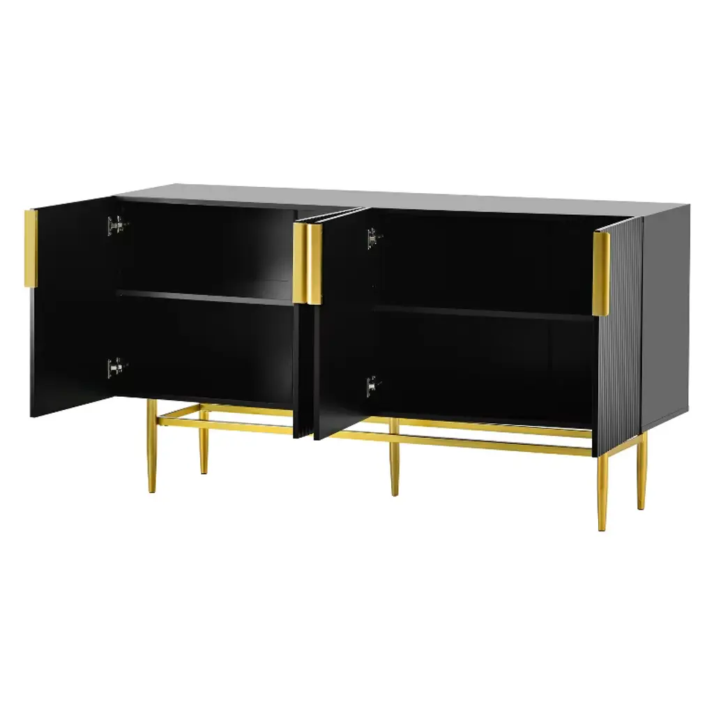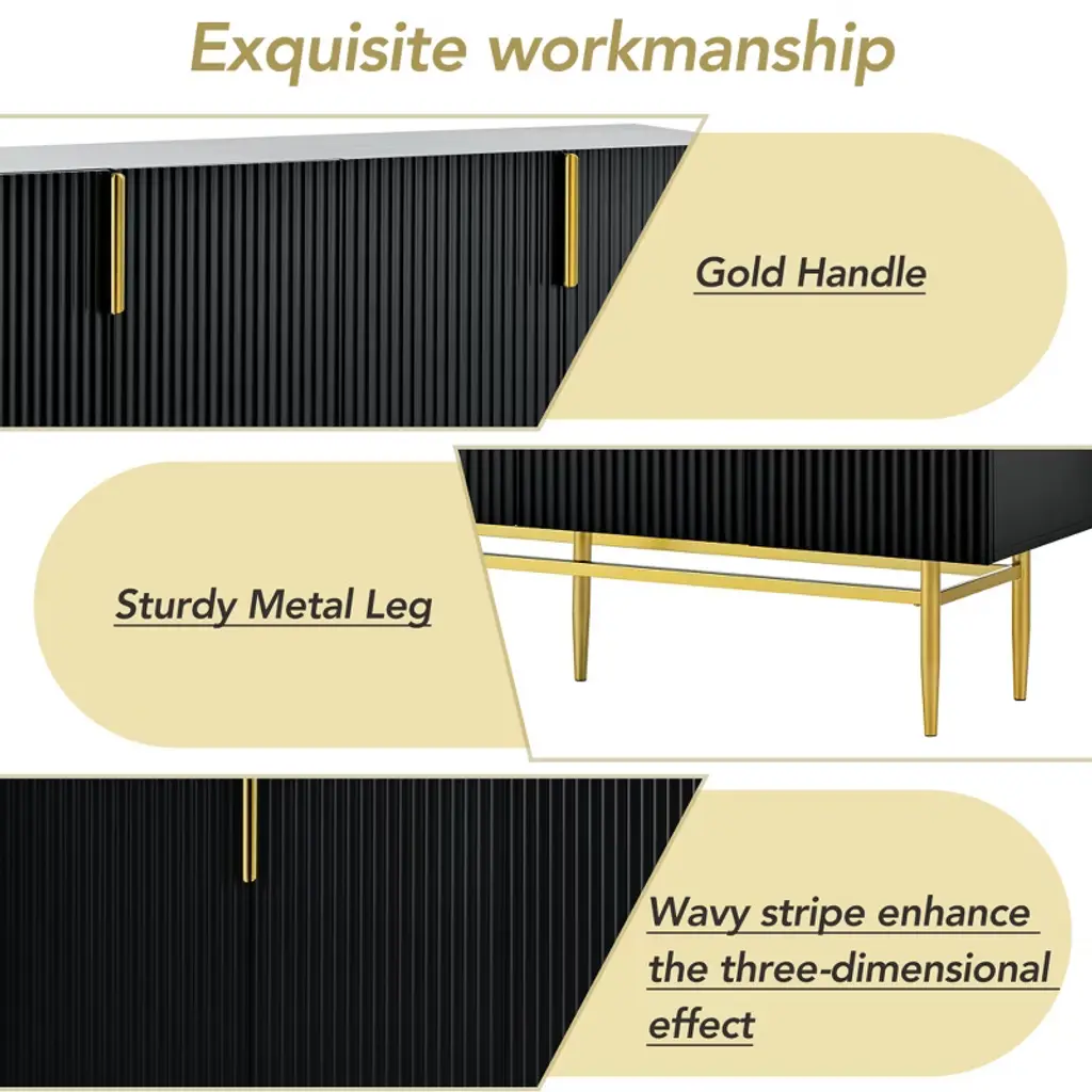 Yoocozz Particle Board Modern 4-door Buffet Cabinet With Gold Metal Handle-black