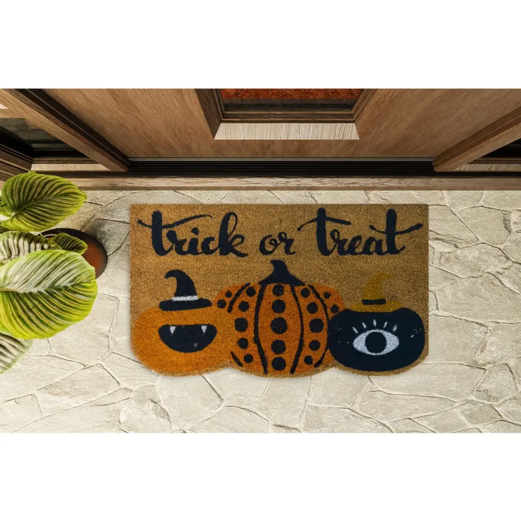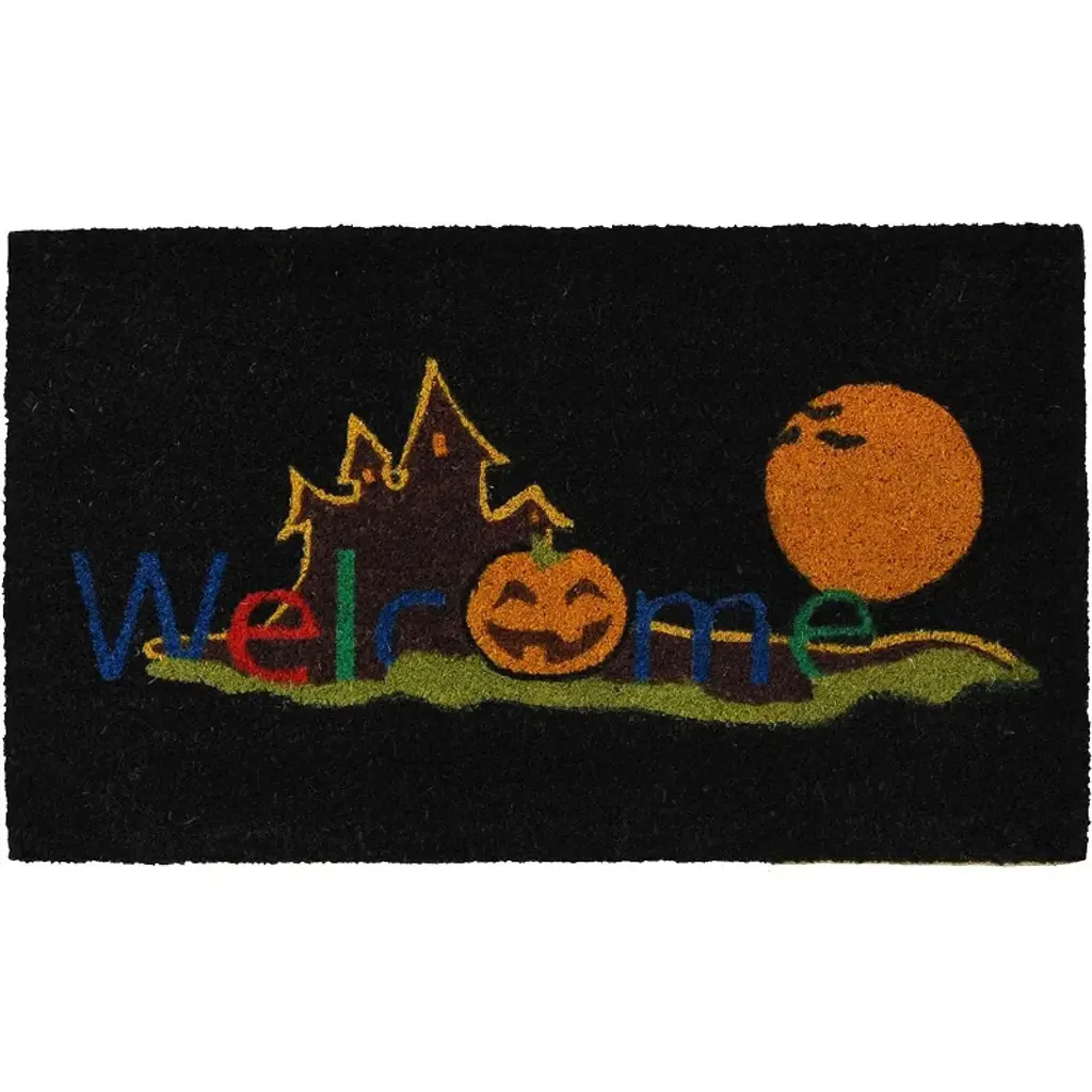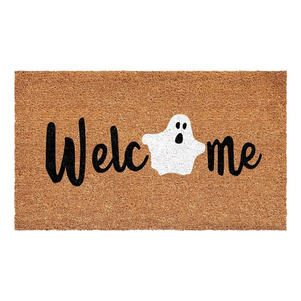 Welcome all the guests and ghouls to your home in style with the Ghostly 'Hello' Doormat from Hyde and EEK! Boutique™. This medium-pile doormat is made of coir material that effectively removes dirt and debris from shoes right at your doorstep, while latex backing helps keep it in place. Designed for everyday use, this rectangular doormat features the text ''Hello'' plus allover ghost graphics to add fun Halloween vibes to your entryway.Hyde and EEK! Boutique™: Thrilling delights. Curious oddities.