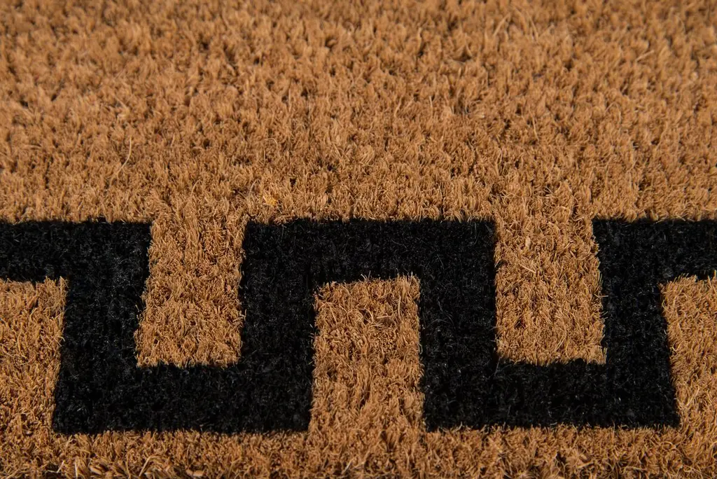 Simply designed with a stylized border, this doormat's coir pile acts as a natural scraper on shoes to keep debris from entering your home.