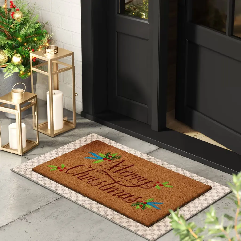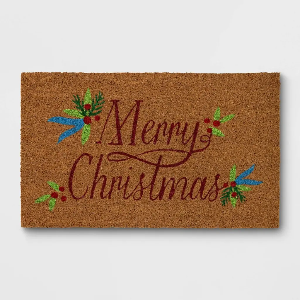 Bring fun, festive style to your home with this 'Merry Christmas' Coir Doormat from Wondershop™. This rectangular doormat features the phrase "Merry Christmas" with florals to add a seasonal vibe to your front door. This doormat helps keep your space clean by clearing dirt and debris from shoes at the door, while the latex backing helps prevent it from slipping or sliding. Best of all, you can simply shake it out to keep it looking fresh and clean.Welcome to the Wondershop™.