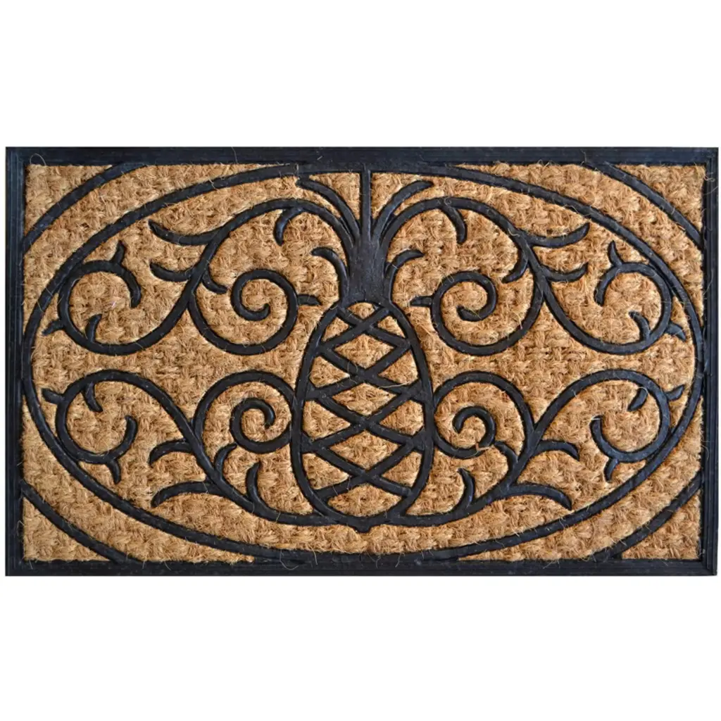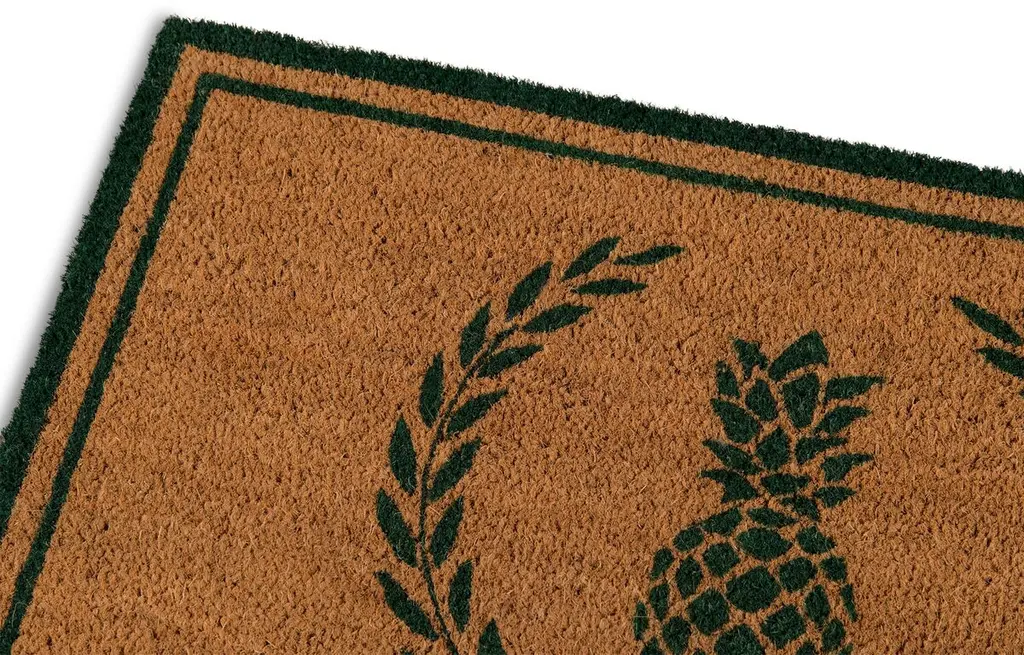 Designed with a pineapple motif in green, this welcoming doormat's coir pile acts as a natural scraper on shoes to keep debris from entering your home.