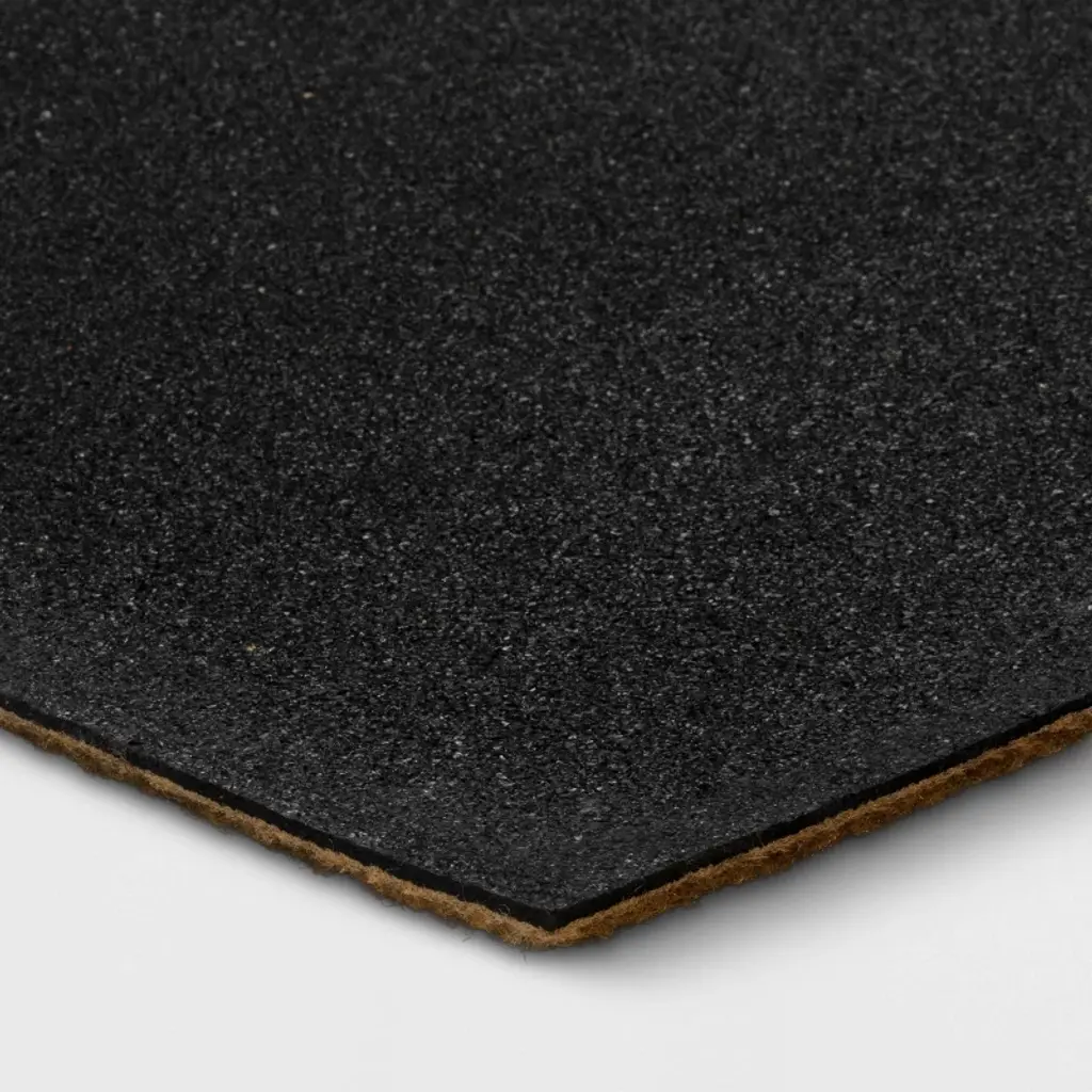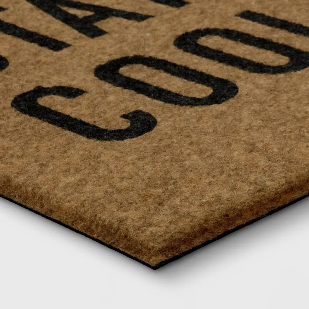 Complete the look of your entryway with the playful, pup-tacular flair of this Stay Cool Dog with Floatie Faux-Coir Outdoor Doormat from Sun Squad™. This low-pile doormat is made of faux-coir material that effectively removes dirt and debris from shoes right at your doorstep. The rectangular doormat showcases the black-lettered text "Stay Cool" accompanied by a cute dog sporting red shades and a pink flamingo floatie, all set against a brown background, to infuse your front door with delightful, summery vibes.Sun Squad™: Ready for fun.