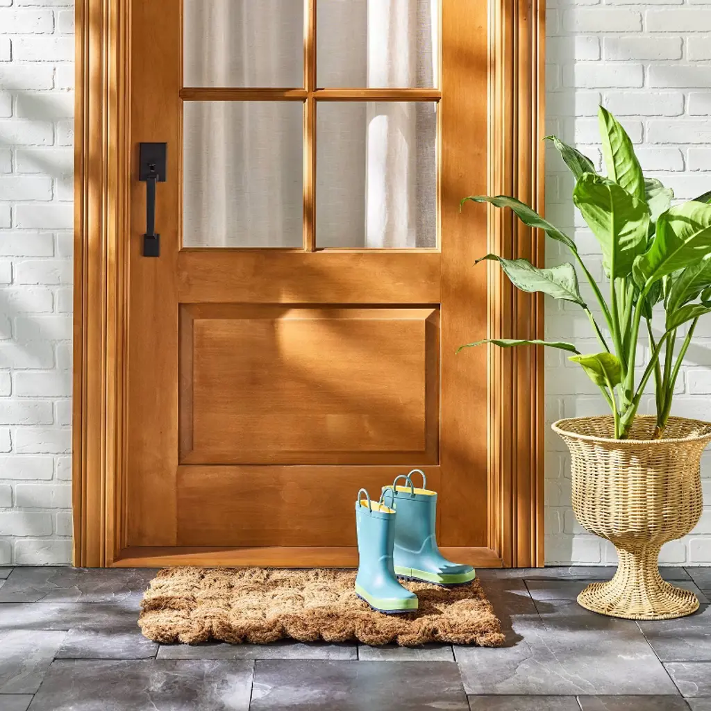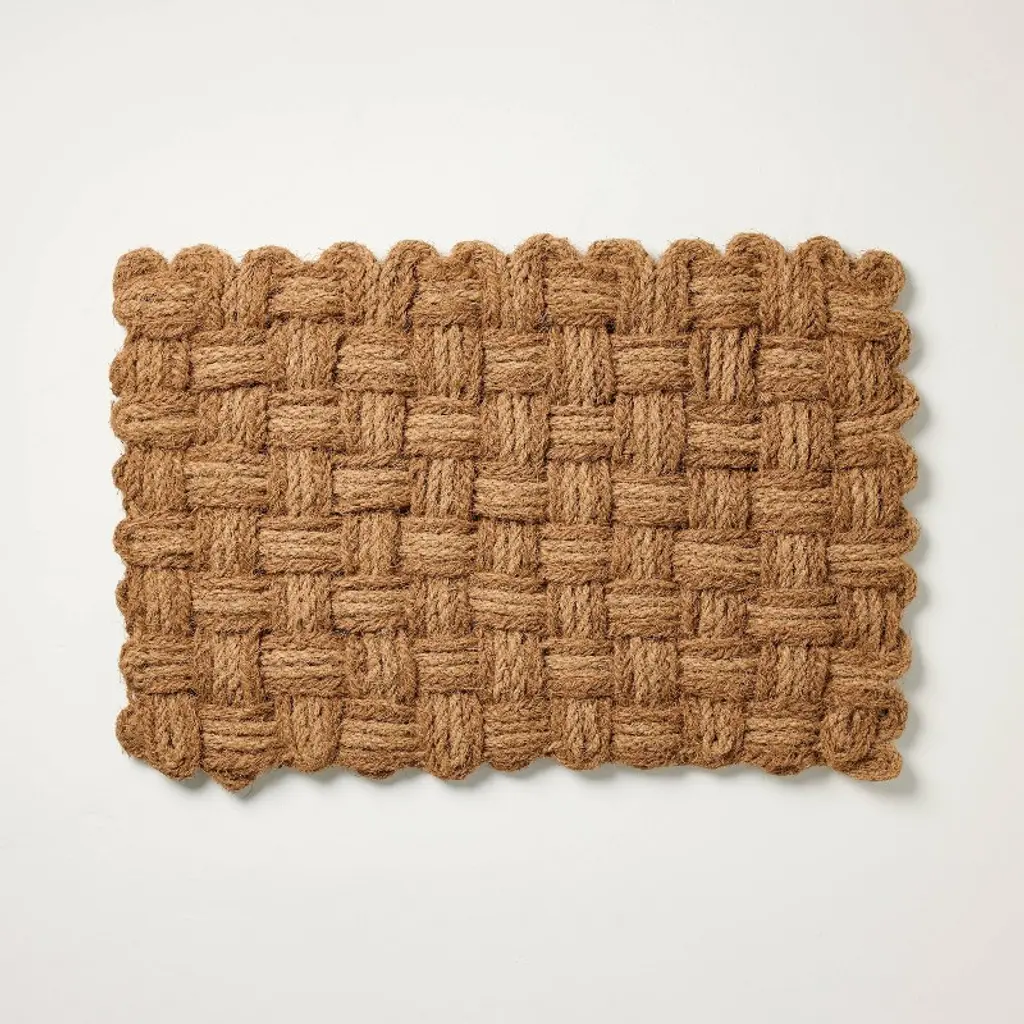 Add a vintage look to your outdoor space by using the Large Scale Braided Doormat from Hearth & Hand™ with Magnolia. This rectangle doormat features a braided design for an artistic appeal and a textured look. Made of 100% coir with latex backing, this high-pile doormat helps prevent dirt from entering your home. Simply shake and clean for easy maintenance.Hearth & Hand™ with Magnolia: Gather • Create • Enjoy
