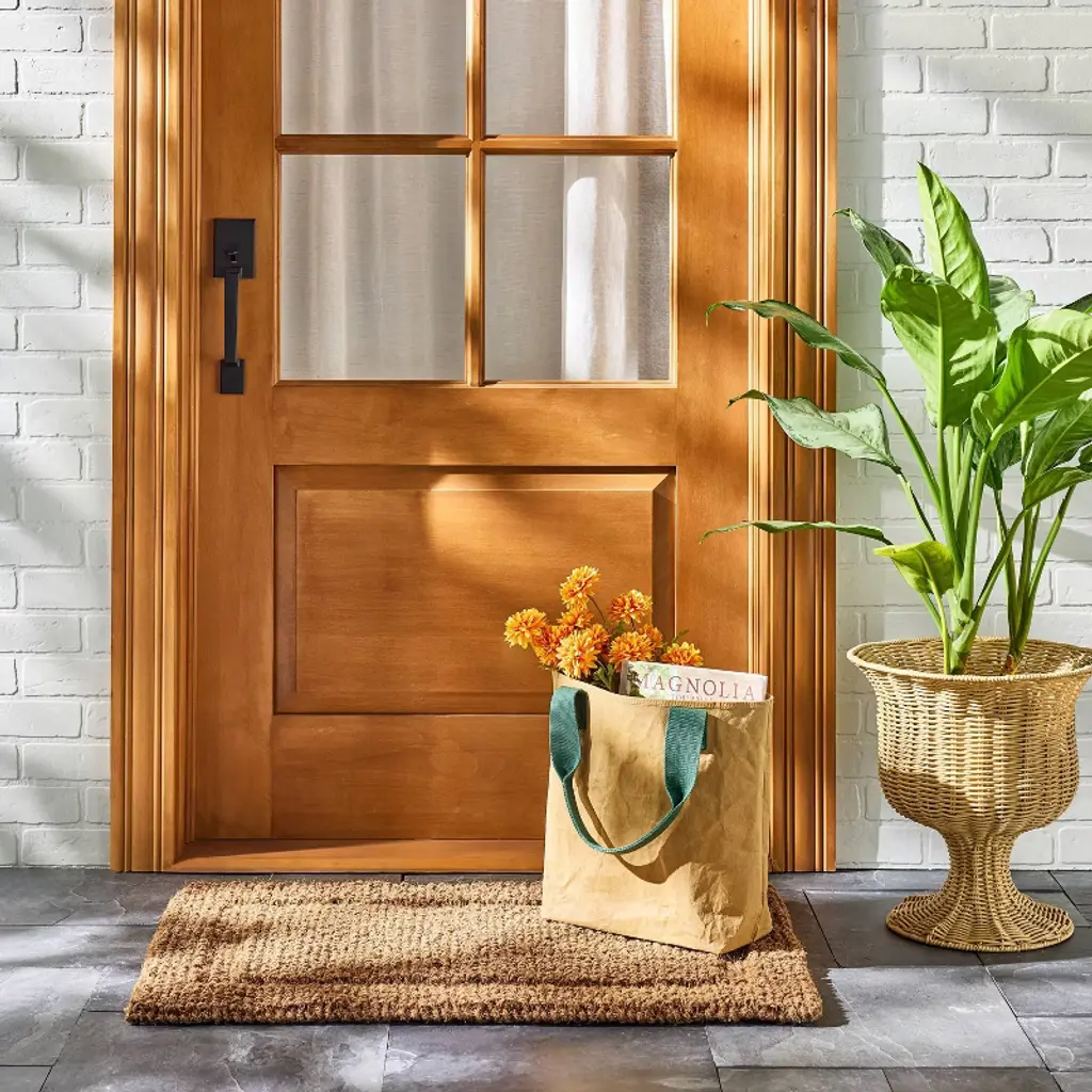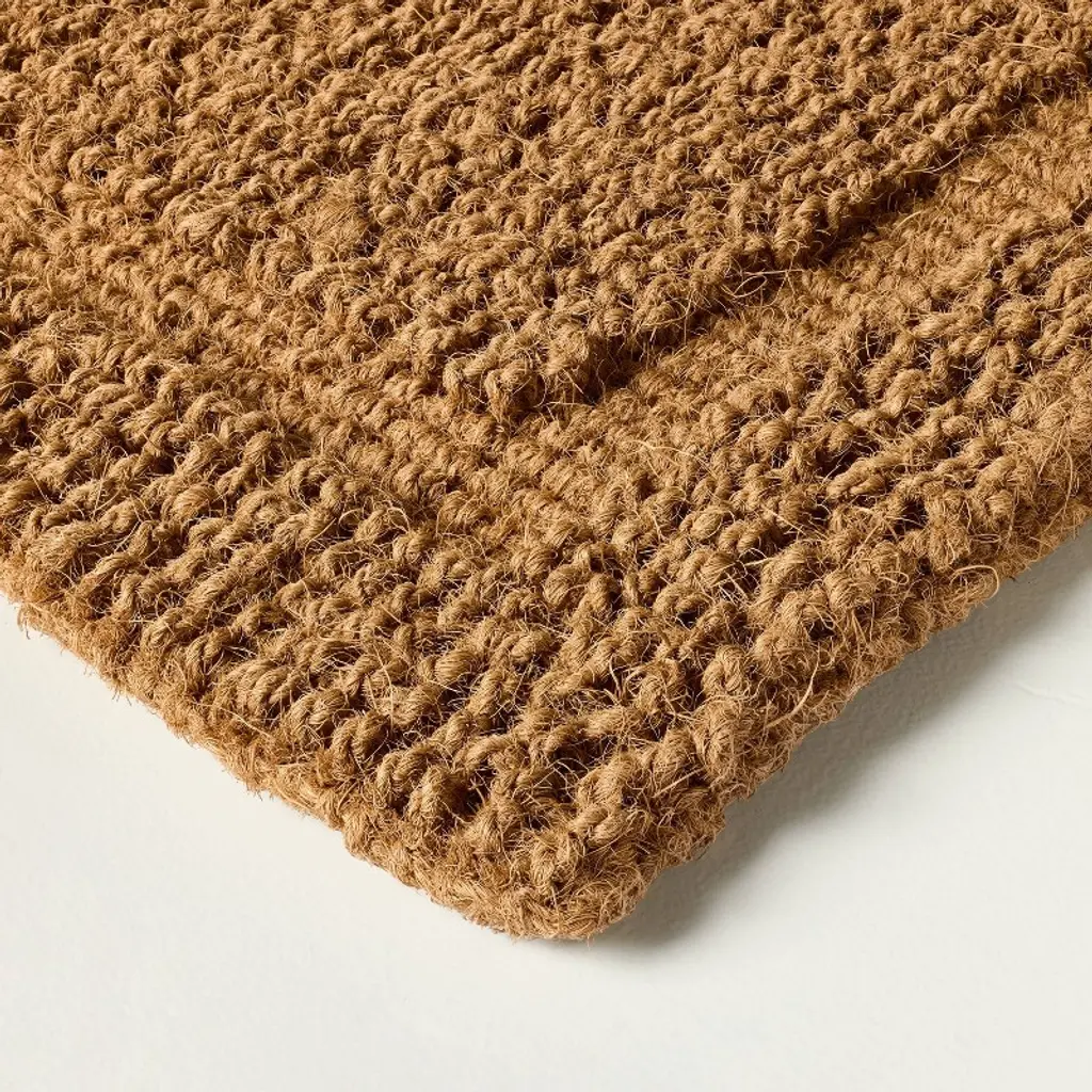 Create a charming entryway look with this Natural Woven Doormat from Hearth & Hand™ with Magnolia. The high-pile doormat is made of 100% coir material, which effectively removes dirt and debris from shoes right at your doorstep. It comes with a latex backing to keep it in place. This rectangular doormat features a brown hue, providing a lovely look that easily coordinates with your home's aesthetic to create a warm and friendly vibe.Hearth & Hand™ with Magnolia: Gather • Create • Enjoy