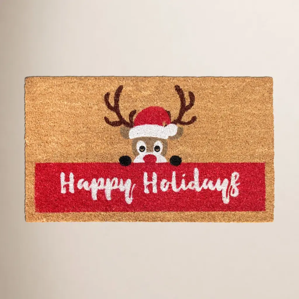 30" Rectangular Santa Claus Christmas Coir Doormat - Red