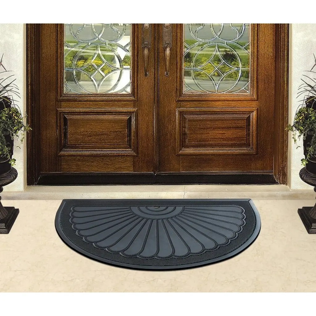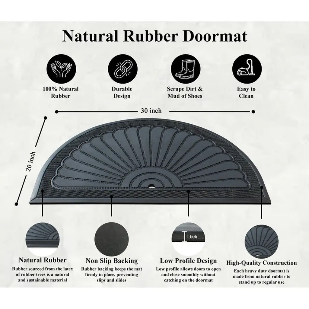 A1hc 100% Pure Rubber Front Door Mat 30”x48”, Non-Slip, Thin Profile Heavy Duty Doormat,indoor Outdoor Sunburst Good Luck Design - Sunburst Black