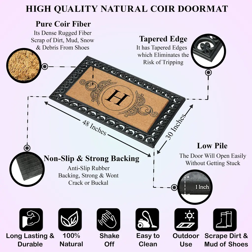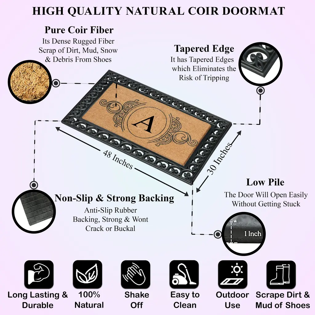 A1hc 30" X 48" Heavy-Duty Rubber & Coir Outdoor Doormat With Copper/black Border – Large, Non-Slip Backing - A