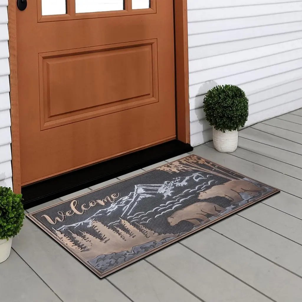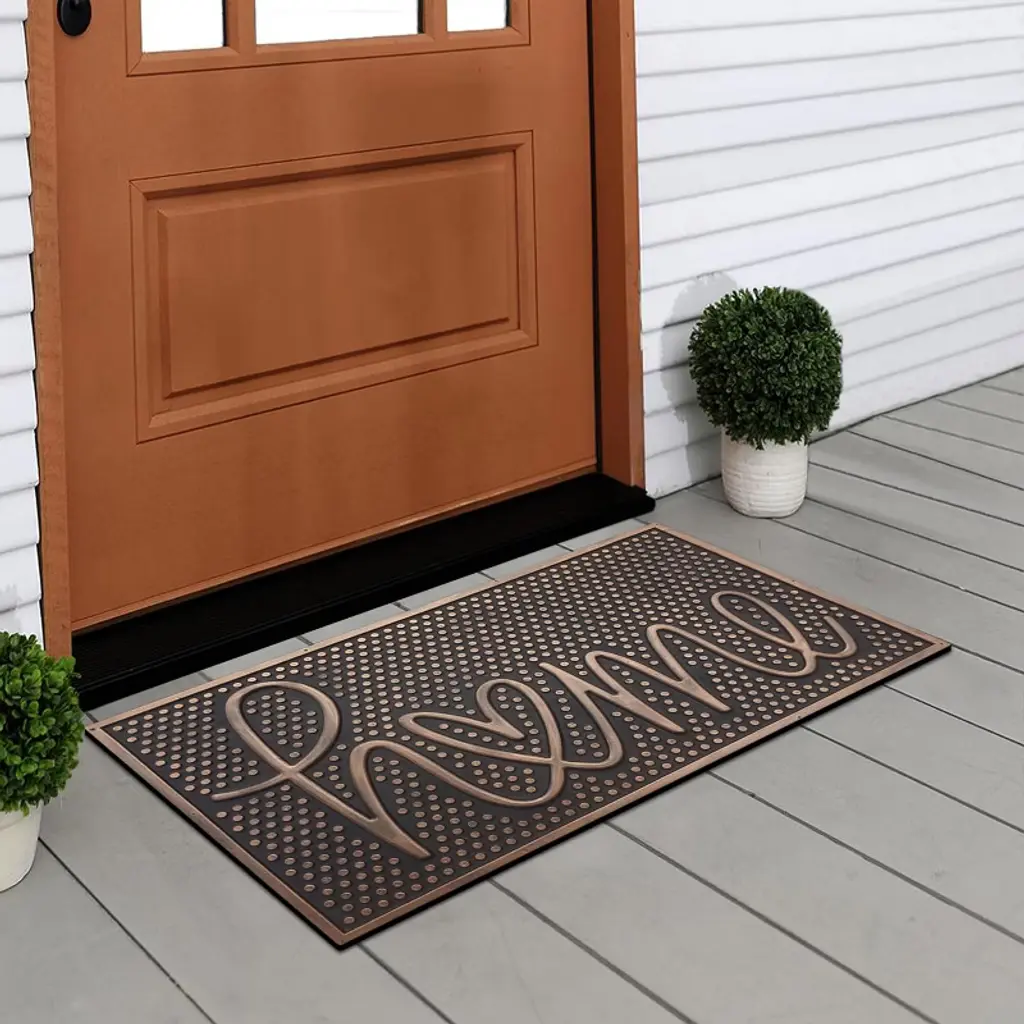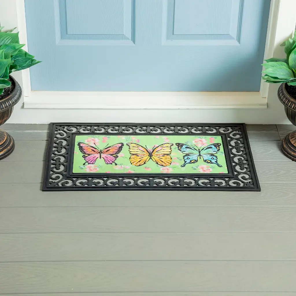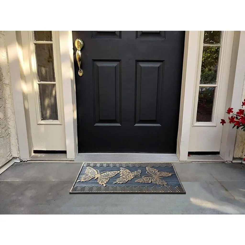 A1hc All Weather Rubber Door Mat, 18”x30”, Dirt Grabber Durable Welcome Doormat, Low Profile Entryway Mats For Home, Fly Away Butterfly Bronze