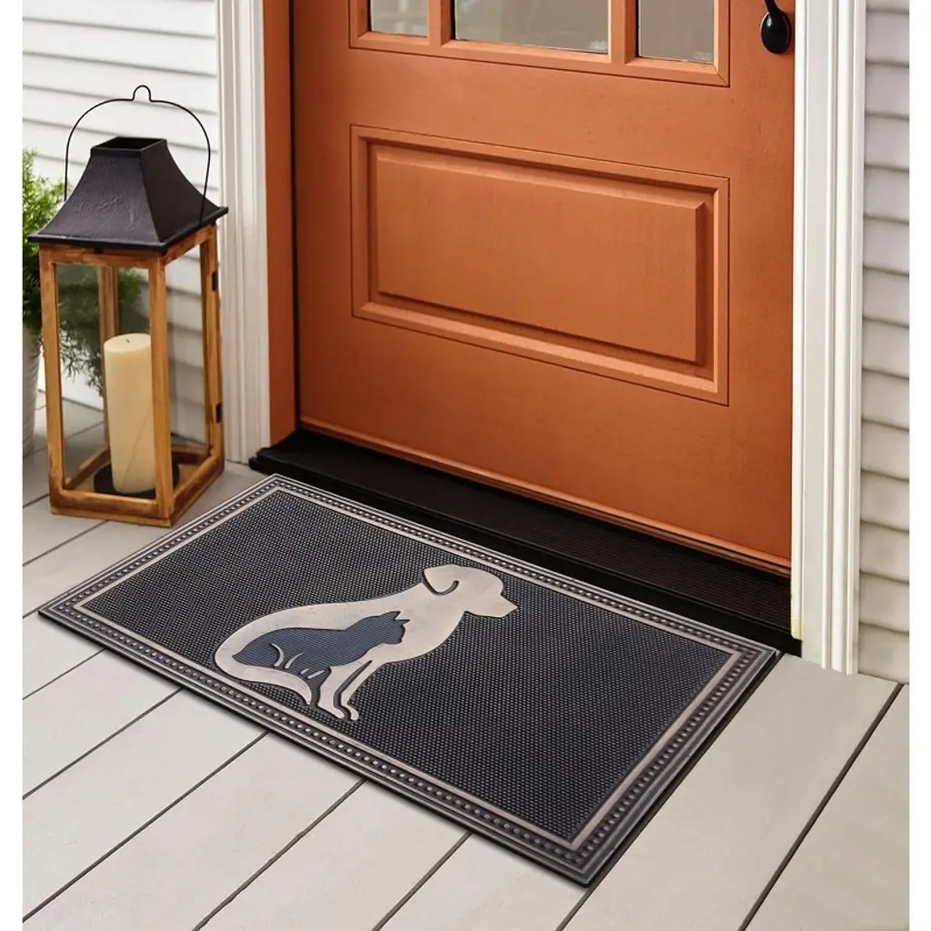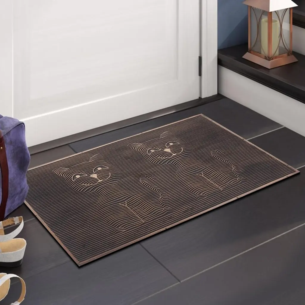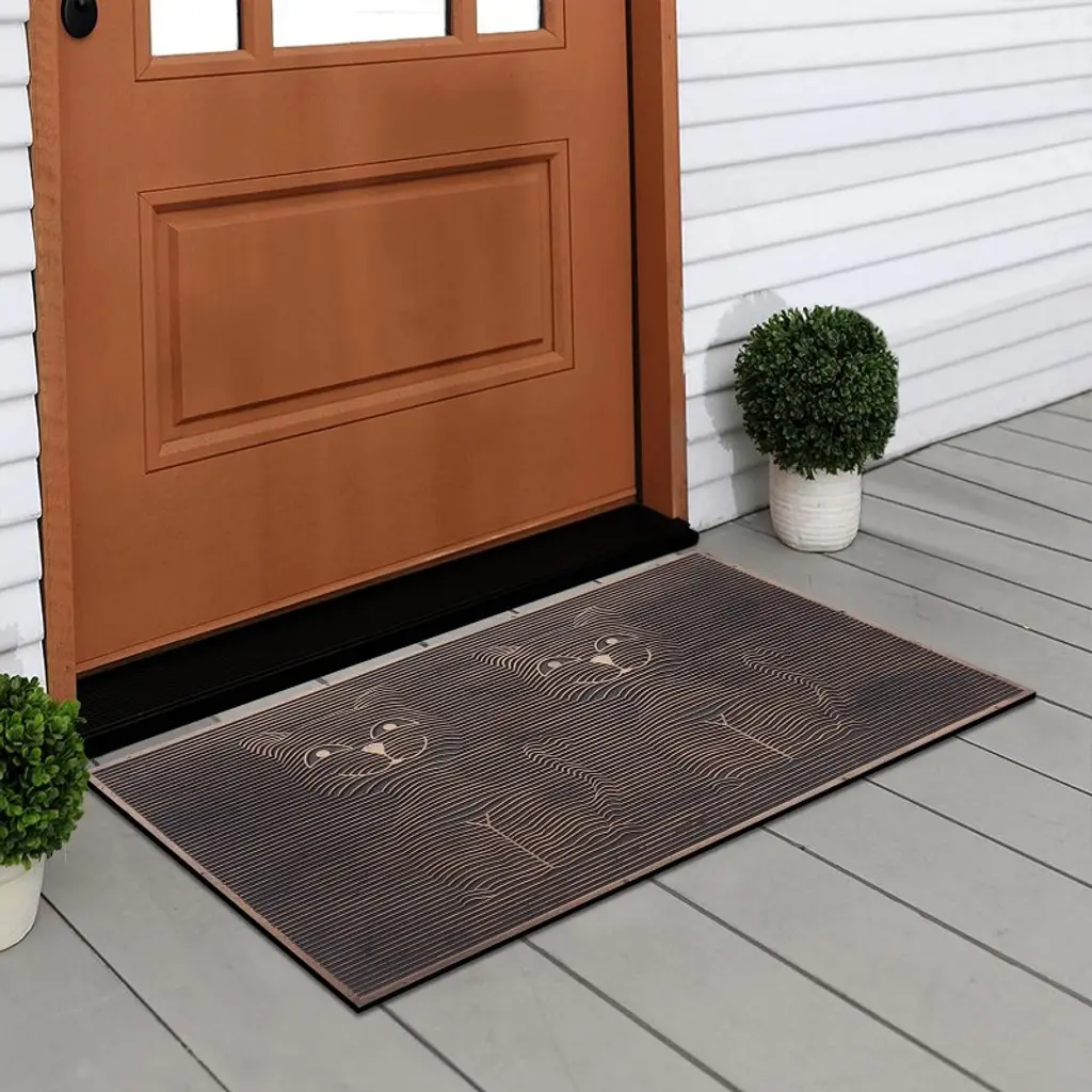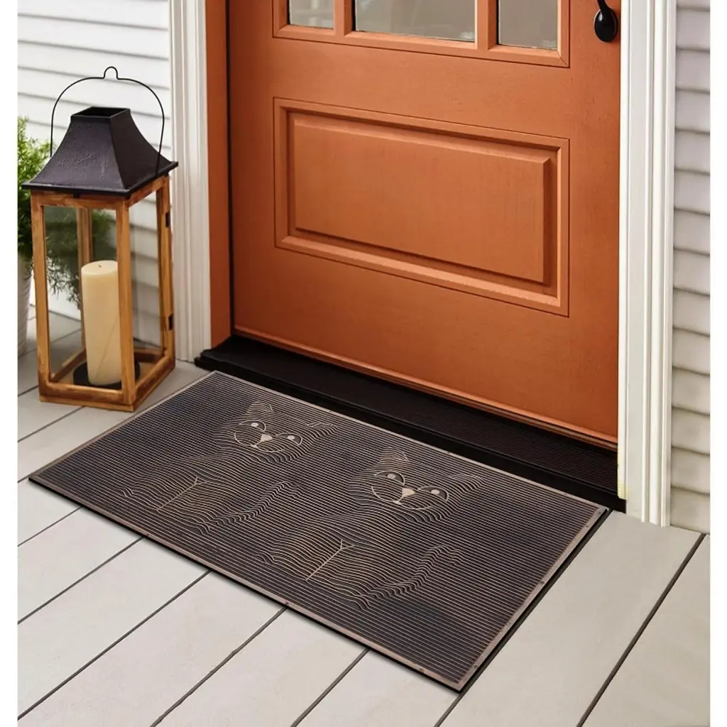 This stylish & unique doormat makes a perfectly fun addition to any porch, patio area or door. Use this mat to catch dirt as your guests enter your home or as decoration to show off your love of felines. This door mat withstands seasonal changes & can be used outside all year long. This transitional style Bronze rubber Door Mat is the perfect way to spruce up your floors & home decor while maintaining a level of practicality.