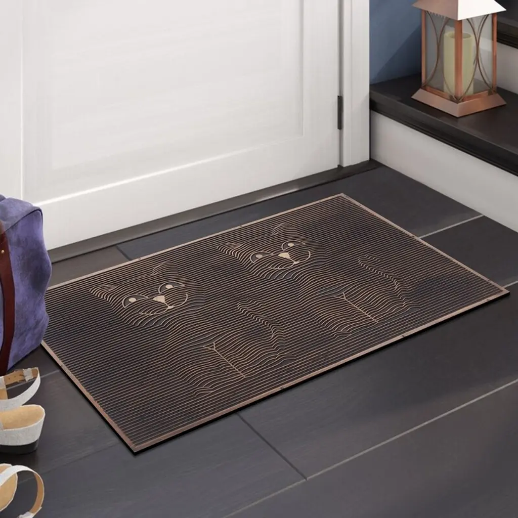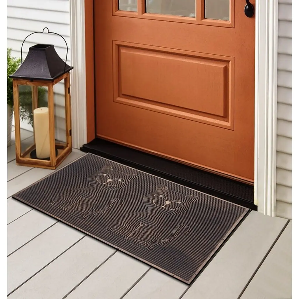 A1hc All Weather Rubber Door Mat, Dirt Grabber Durable Welcome Doormat, Pin Scrapper Doormat - Sitting Cats Bronze