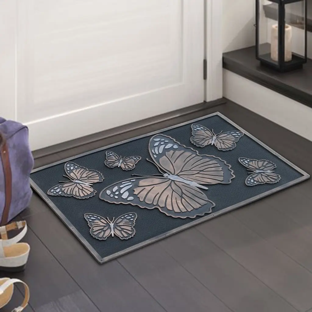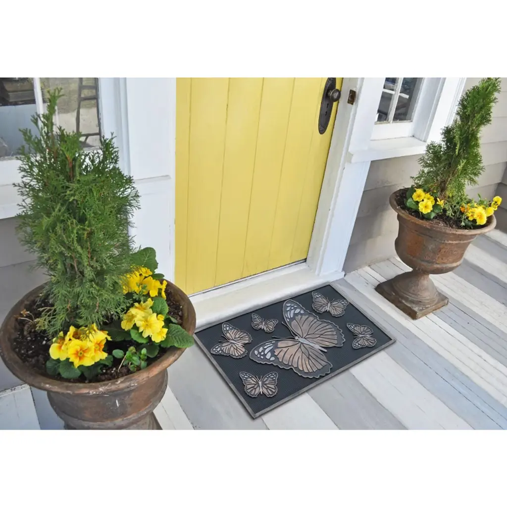 A1hc Butterfly Design Welcome Door Mat 18"x30", Outdoor Rubber Entrance Mat With Non-slip Backing
