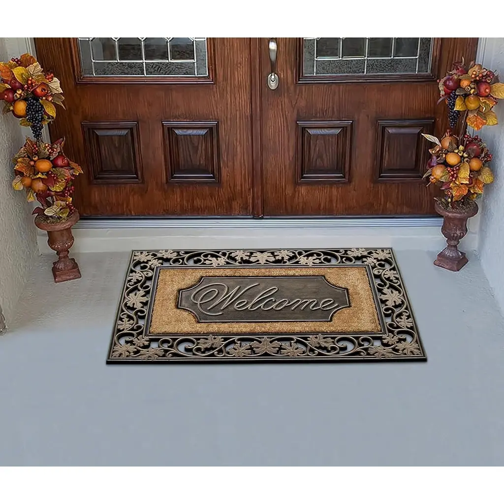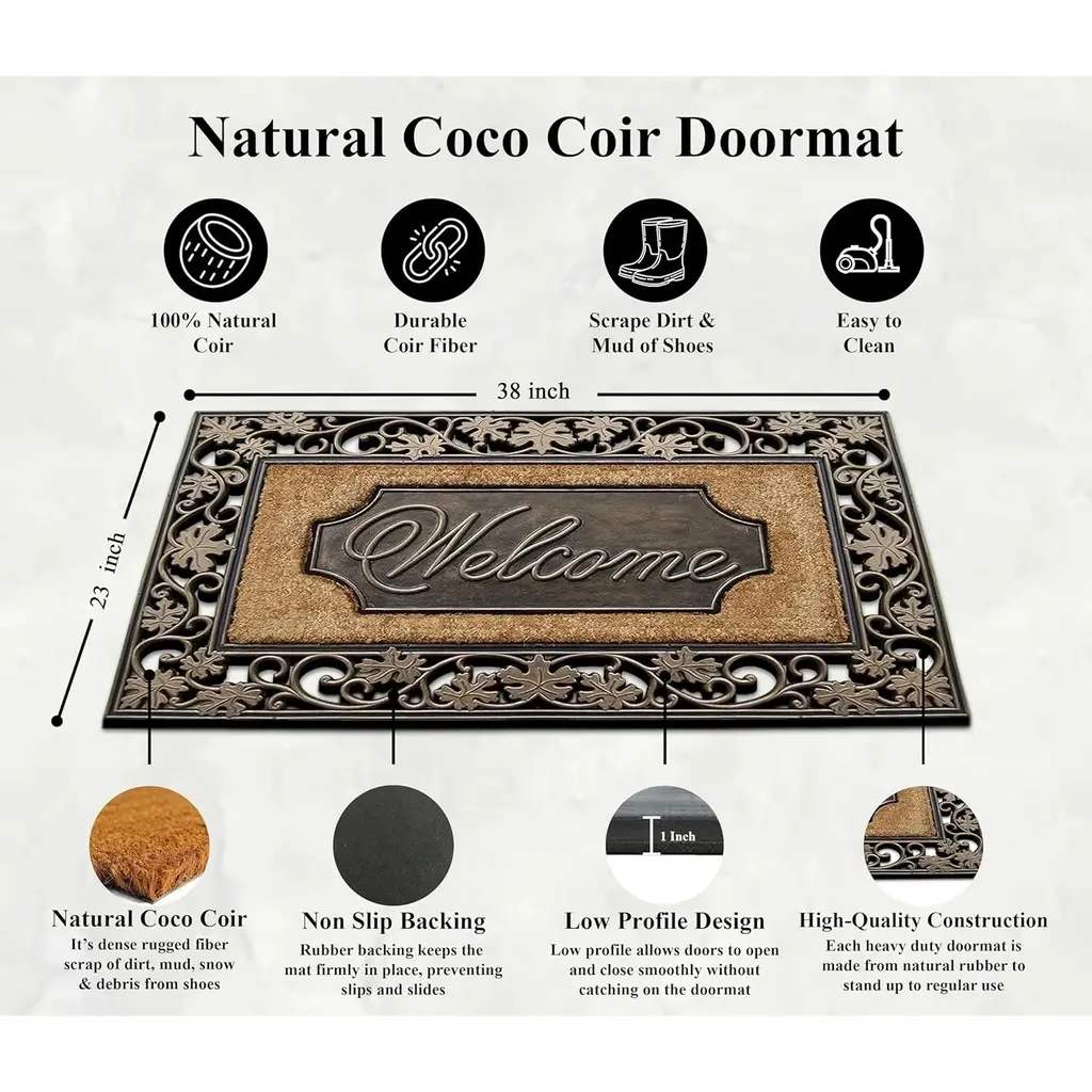 More than a decorative enhancement this rubber & coir doormat is made with a heavy rubber backing that anchors it in place while you brush dirt & debris from shoes & boots. The tufted coco-fiber facilitates scrubbing soles clean. Keeps your floor clean when you decorate your entryway with this beautiful doormat, which includes a sturdy rubber backing to help in keep the mat in place & prevent slips. The attractive design of this Coir Door Mat creates a welcoming entrance for your guests. Vacuum or shake the mat regularly for longer life.
