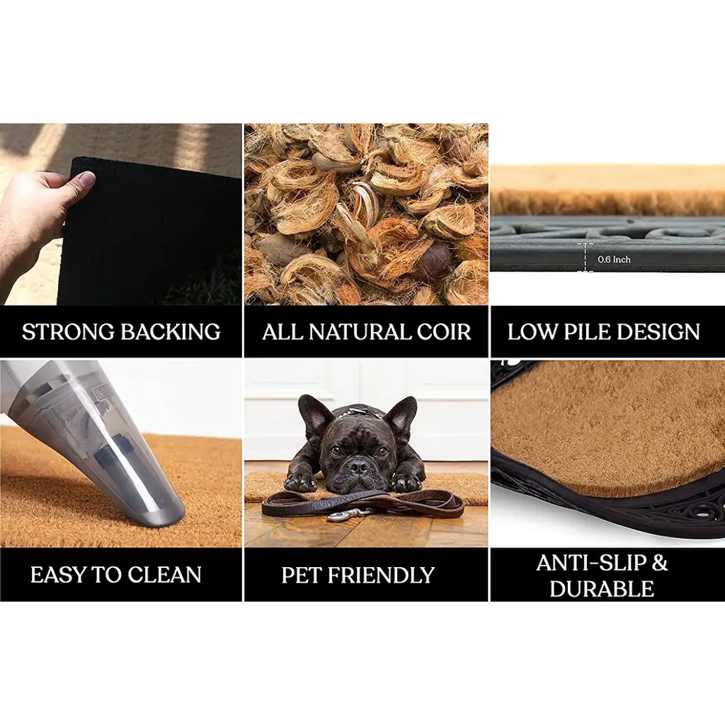 Like all of our door mats, our Monogrammed Coco Door Mat is as durable as it is beautiful. Handmade from 100% coir, an all-natural material known for its scrubbing power and resistance to the elements. Dyes saturate the fibers for vibrant color. Specify you single-letter monogram for the perfect finishing touch, or enjoy the classic border motif alone.