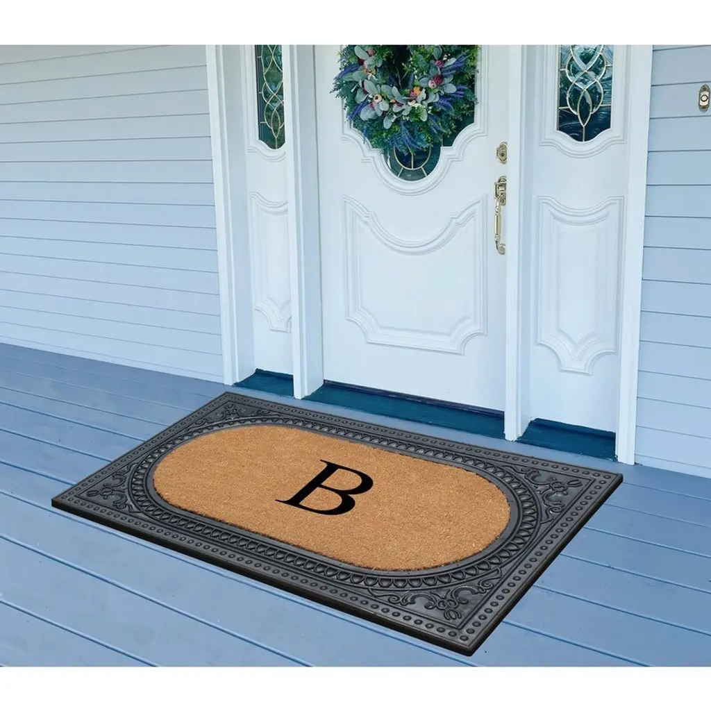 A1hc First Impression Carson Rubber And Coir 24" X 39", Heavy Duty, Easy To Clean Outdoor Monogrammed Doormat - Black - Monogrammed B