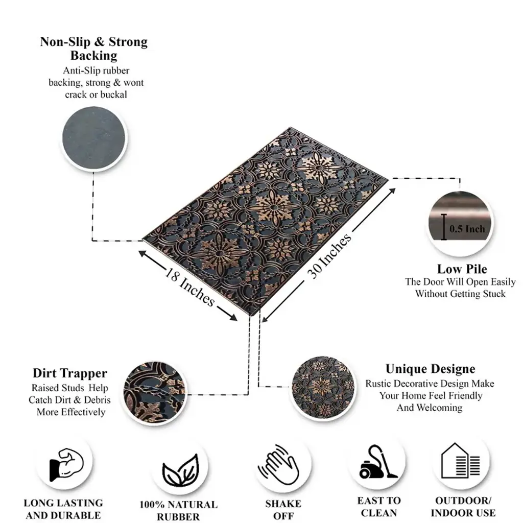 A1hc First Impression, Natural Rubber Doormat, Non-Slip, Durable, Heavy Duty Rubber Mat, 18"x30" - Floral