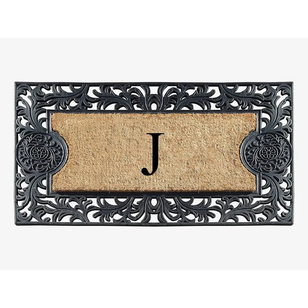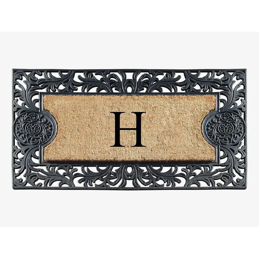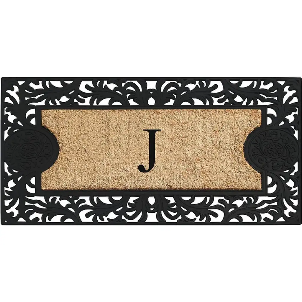 A1hc Floral Border Rubber And Coir Large Outdoor Durable Monogrammed Doormat, Black - 23" X 38" - K