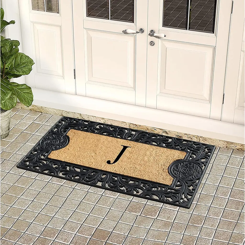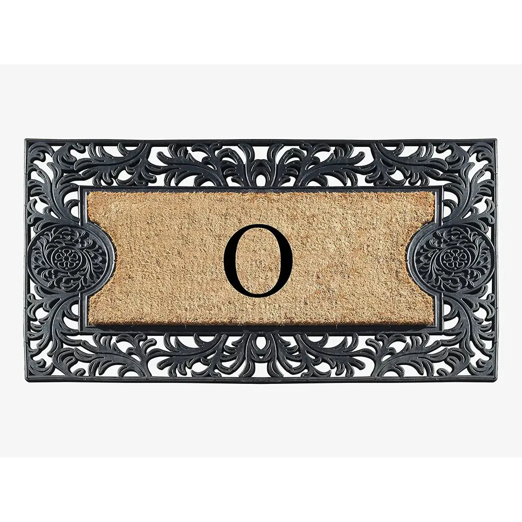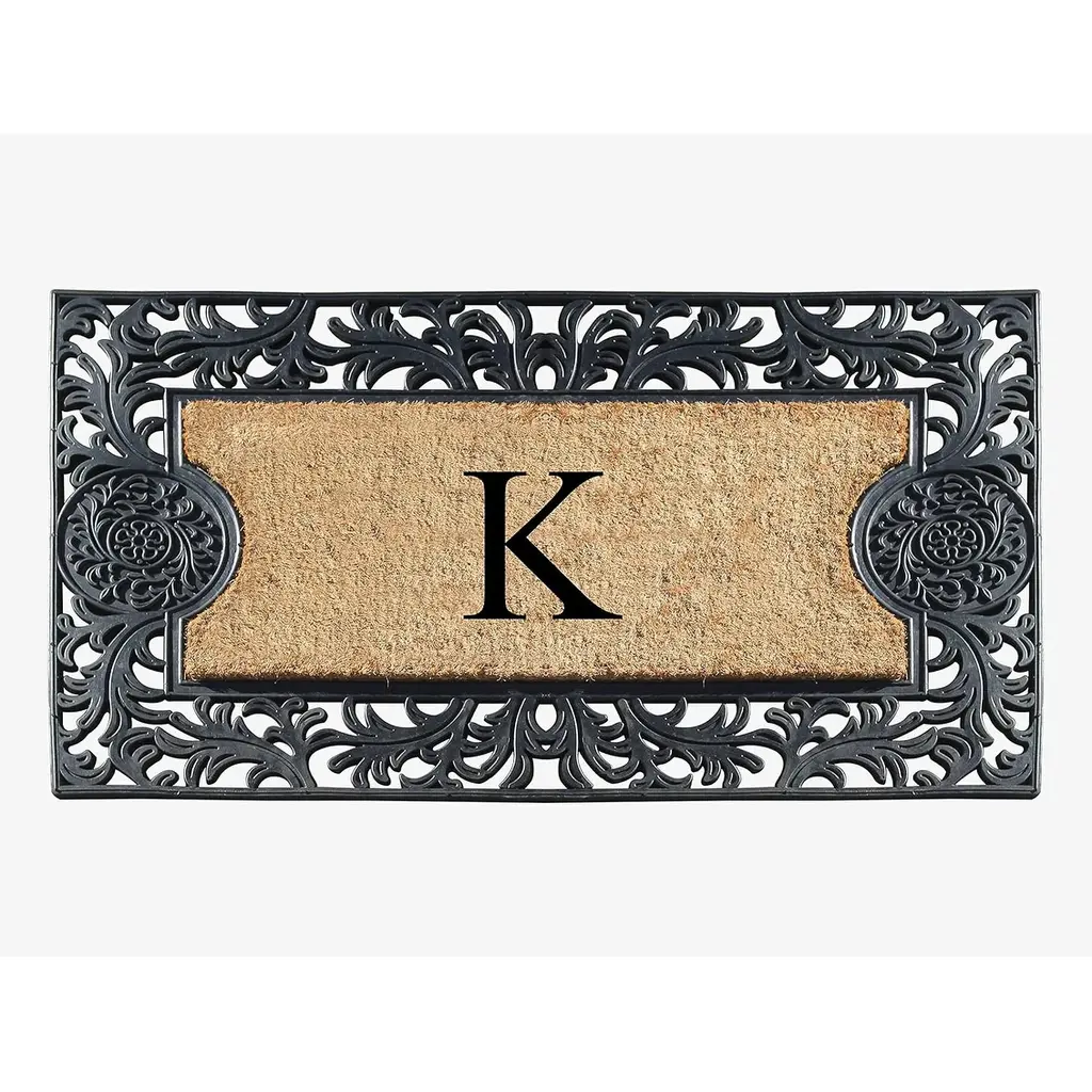 A1hc Floral Border Rubber And Coir Large Outdoor Durable Monogrammed Doormat, Black - 23" X 38" - K