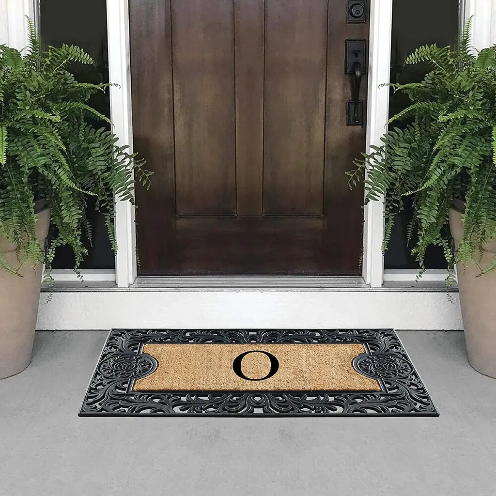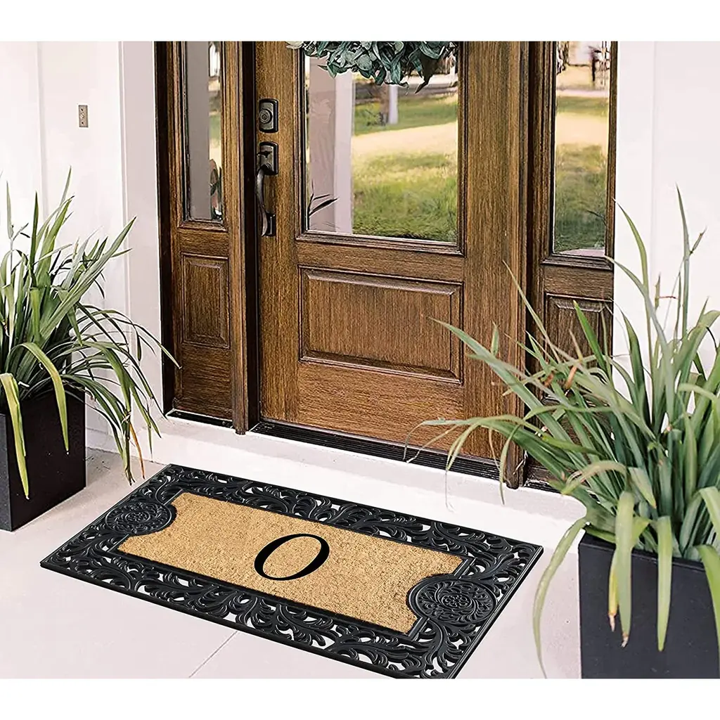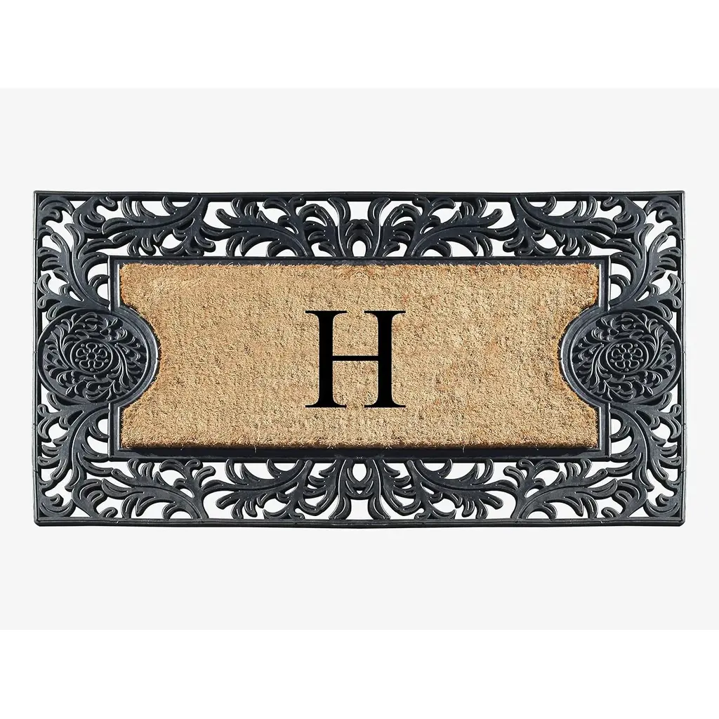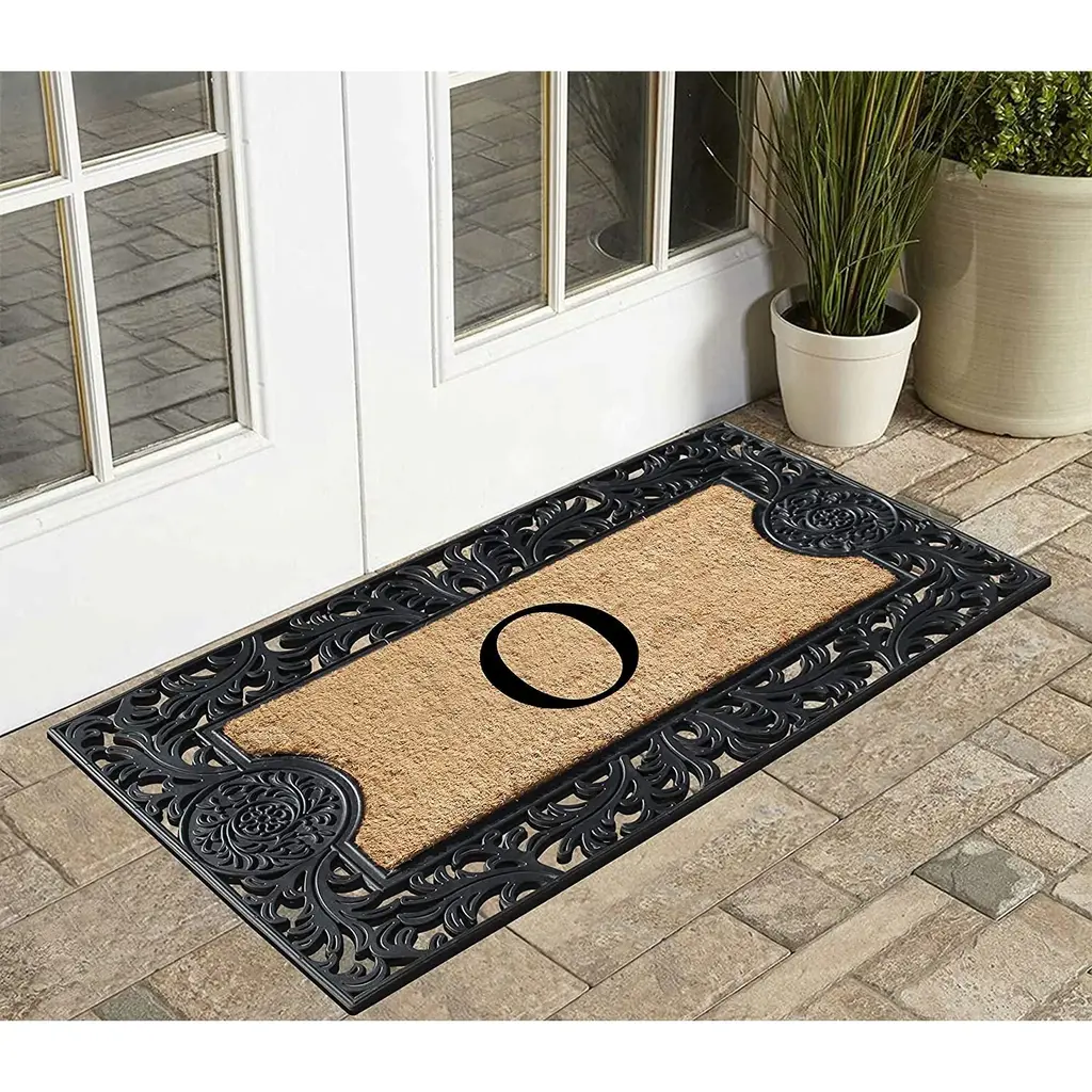A1hc Floral Border Rubber And Coir Large Outdoor Durable Monogrammed Doormat, Black - 23" X 38" - Z