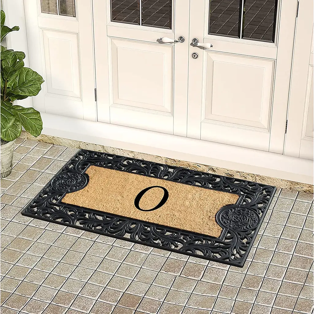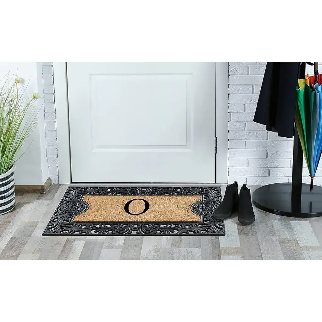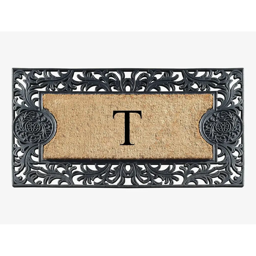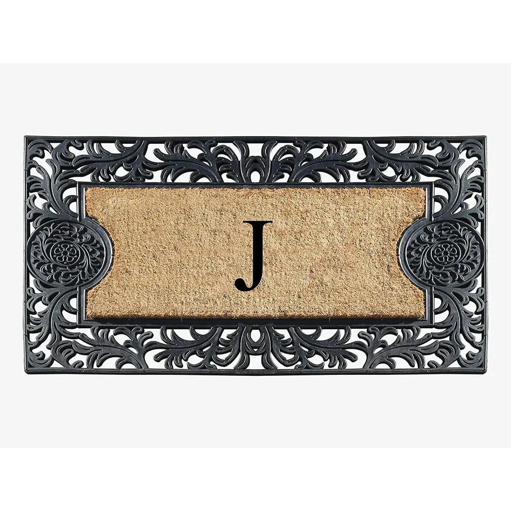 A1hc Floral Border Rubber And Coir Large Outdoor Durable Monogrammed Doormat, Black - 23" X 38" - Z