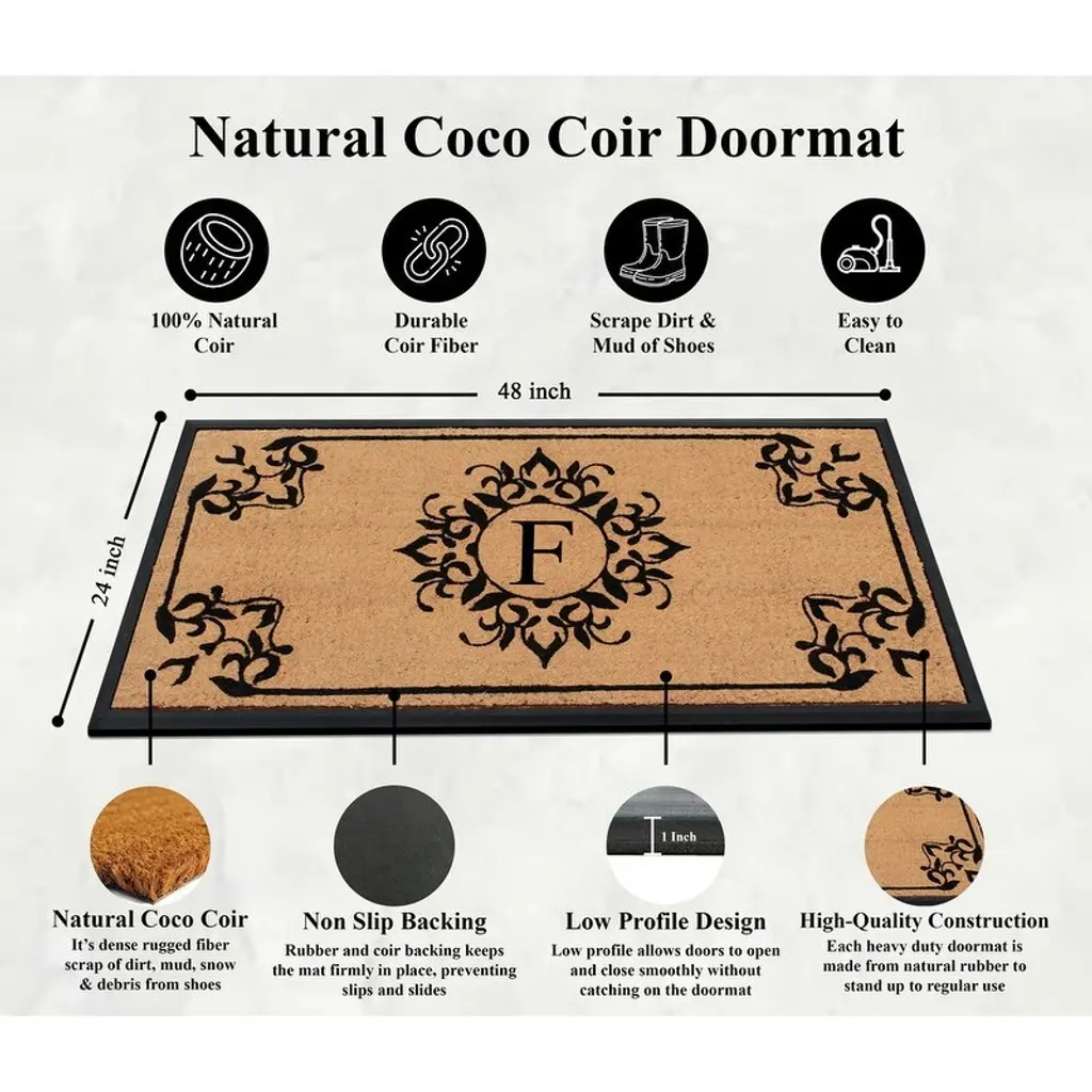 A1hc Floral Natural Coir & Rubber Monogrammed Front Doormat - 24"x48" - F
