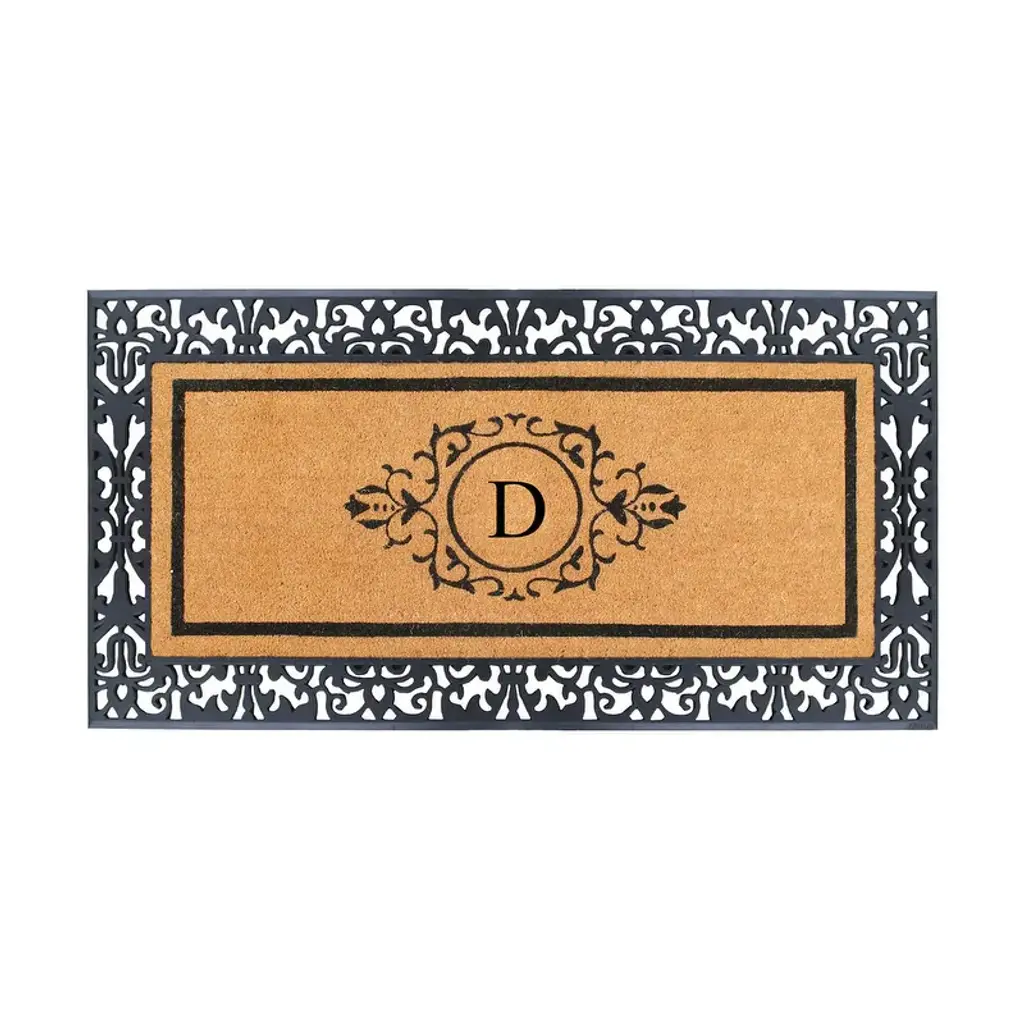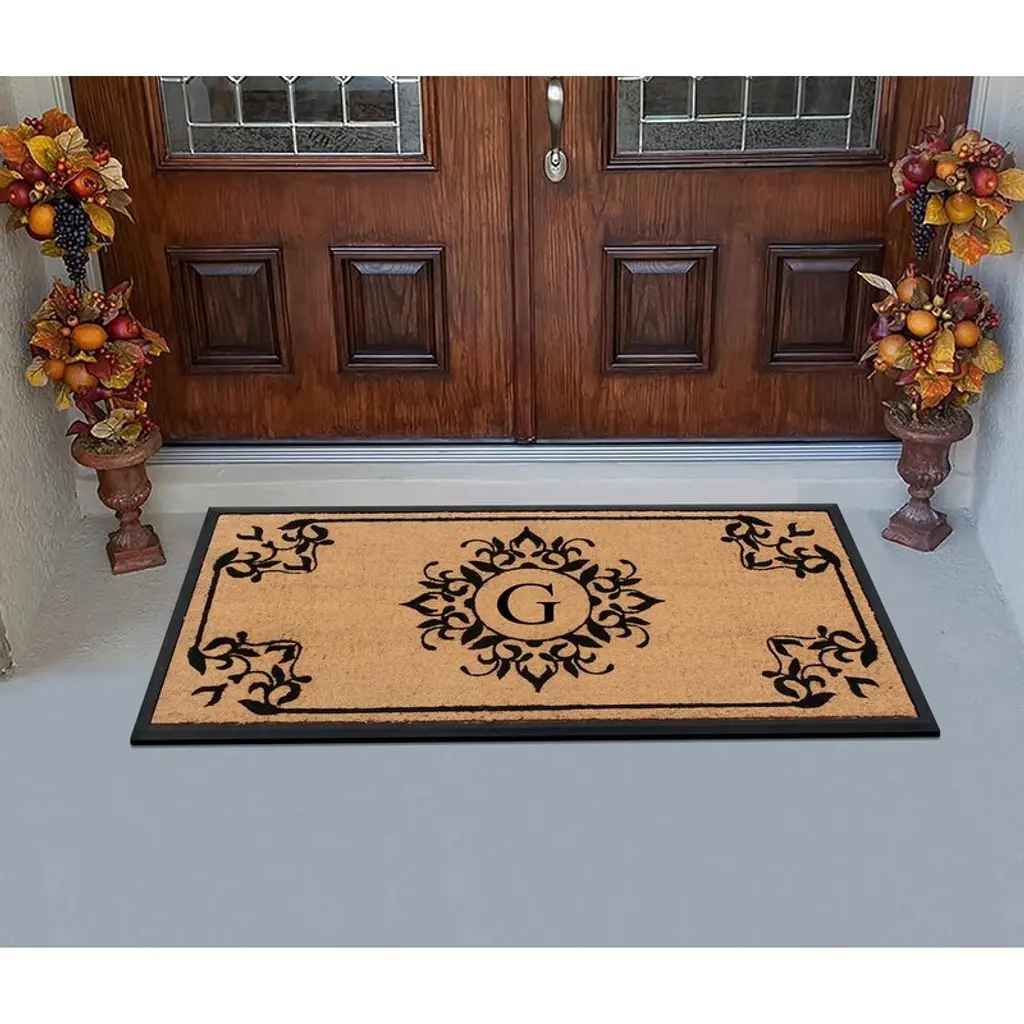A1hc Floral Natural Coir & Rubber Monogrammed Front Doormat - 24"x48" - G