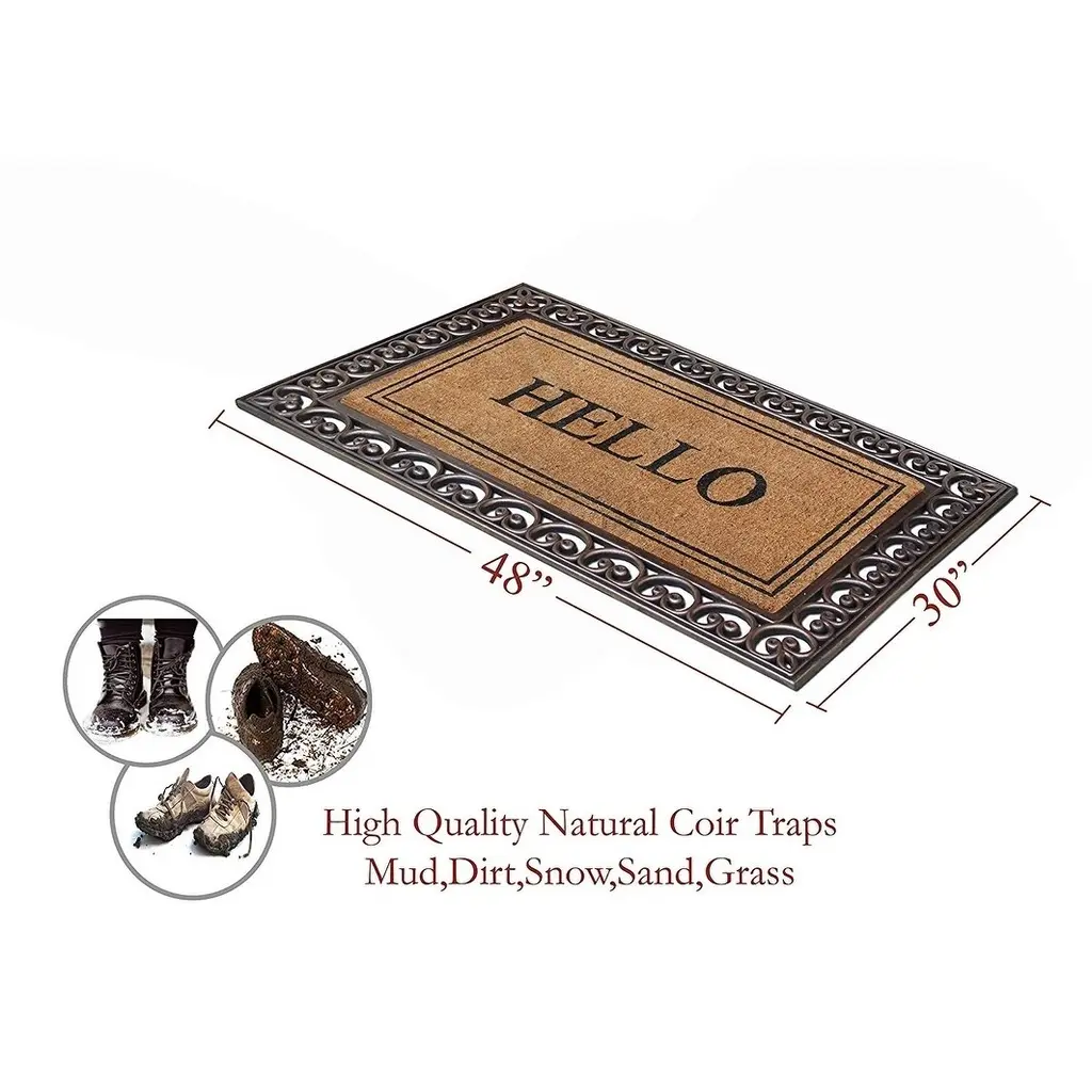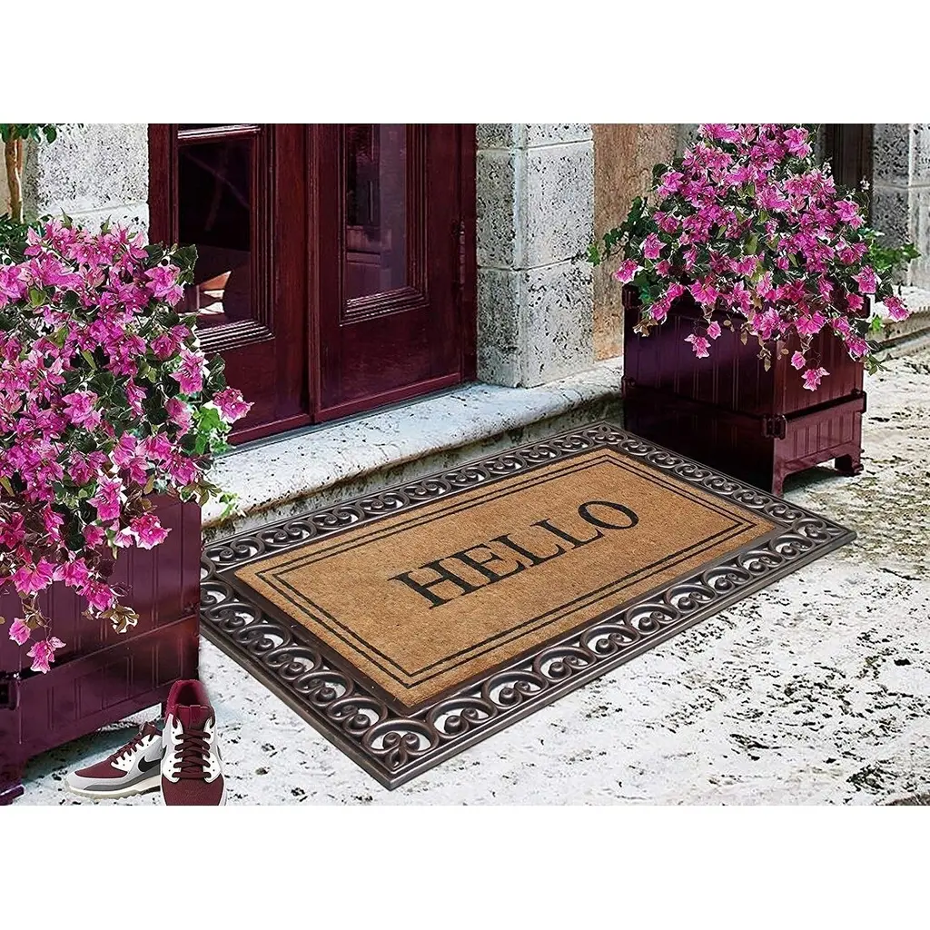 More than a decorative enhancement this rubber & coir molded doormat is made With a heavy rubber backing that anchors it in place while you brush dirt & debris from shoes & boots. The tufted coco-fiber facilitates scrubbing soles clean. Keeps your floor clean when you decorate your entryway with this beautiful doormat, which includes a sturdy rubber backing to help in keep the mat in place & prevent slips. The attractive design of this Coir Door Mat creates a welcoming entrance for your guests & the durable coir material holds up to lots of foot traffic. This Welcome Mat Recommended for outdoor use in covered areas. Vacuum or shake the mat regularly for longer life.